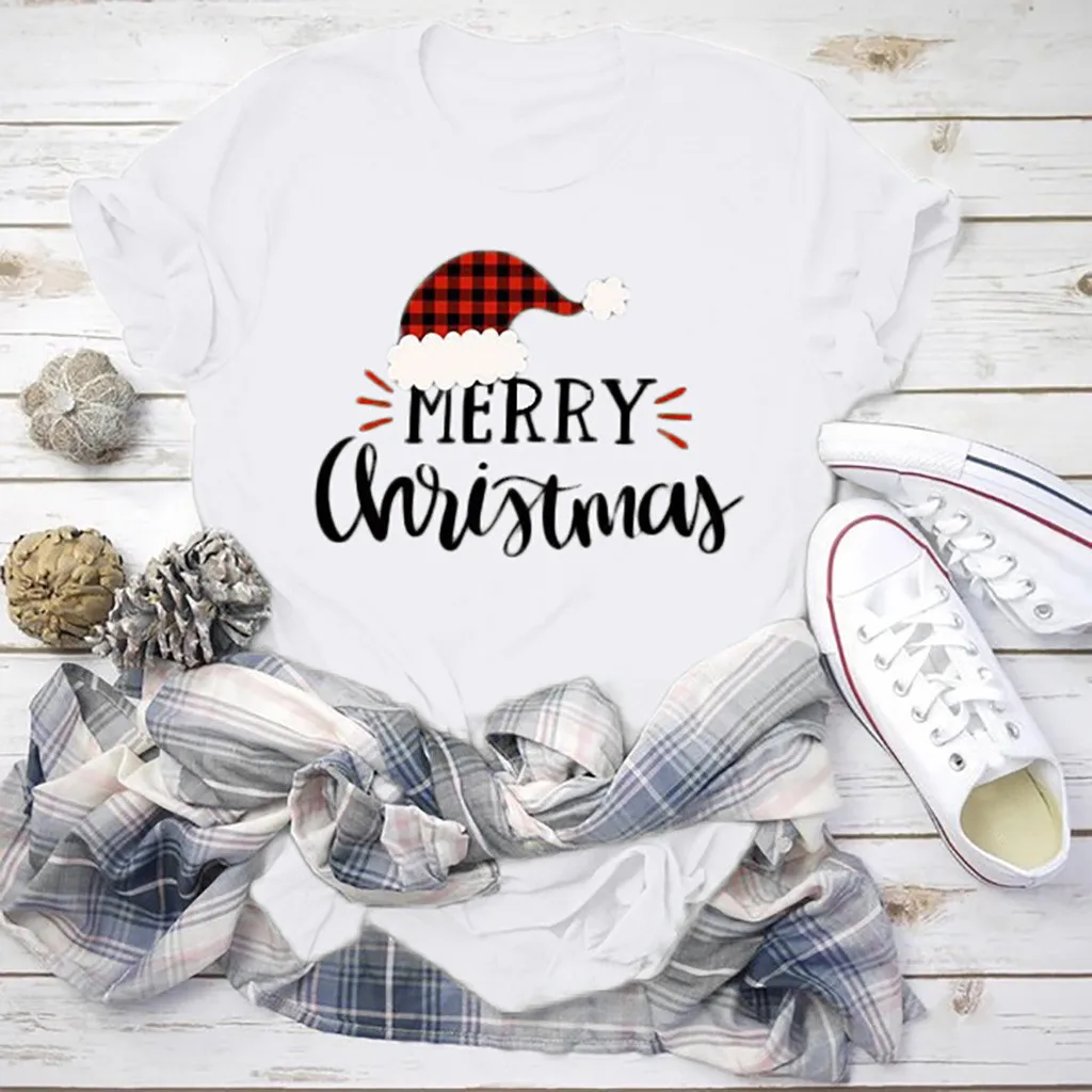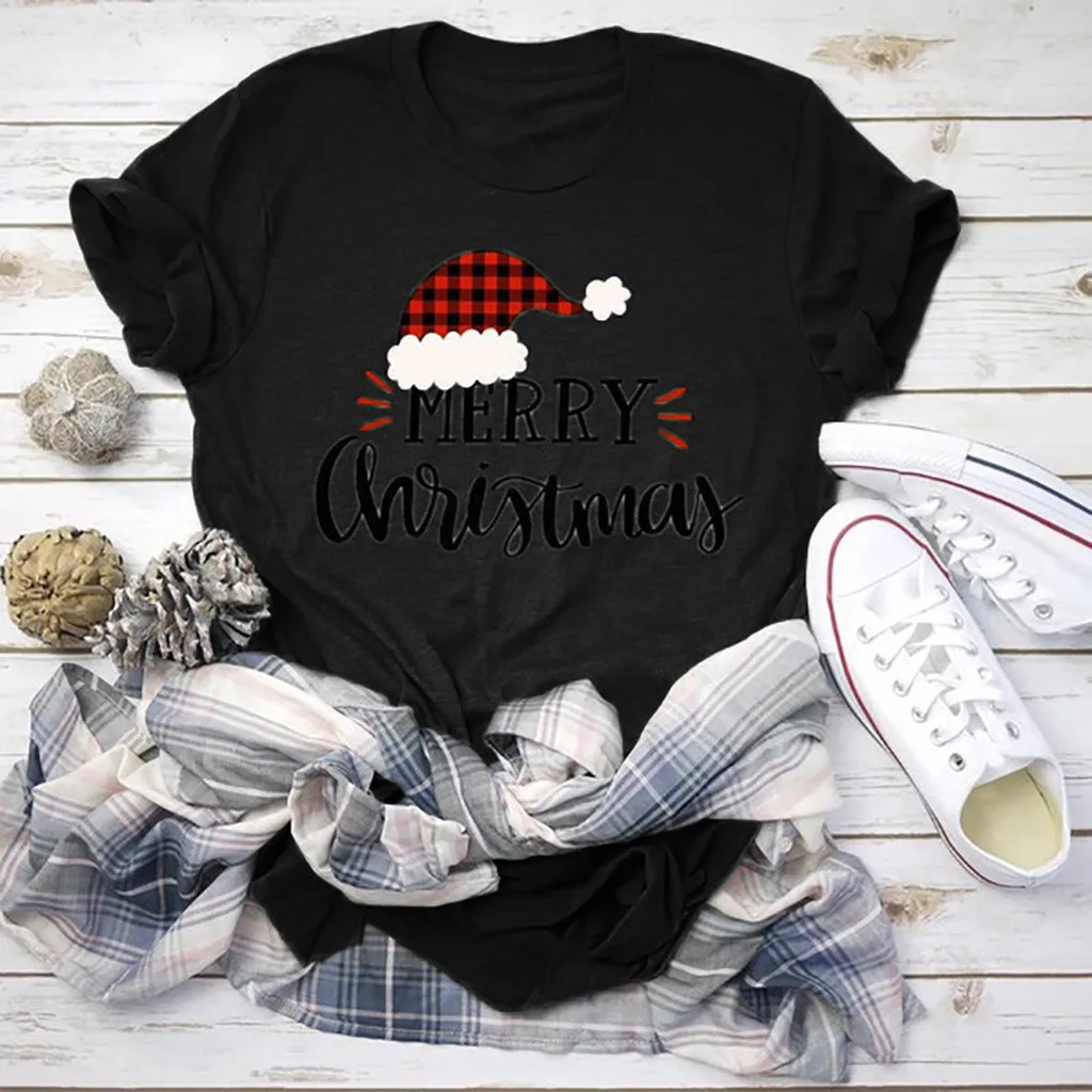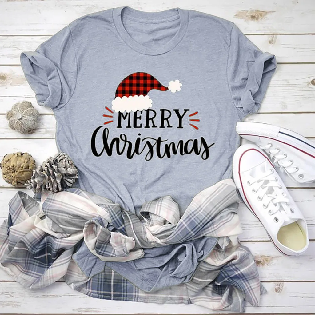 Женские рождественские футболки с буквенным принтом и круглым вырезом с коротким рукавом, топы, блузки