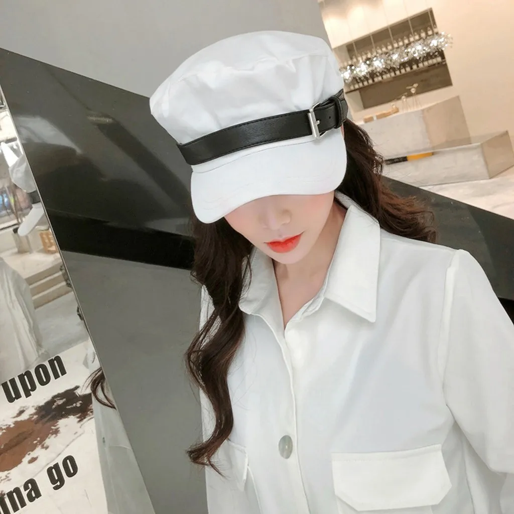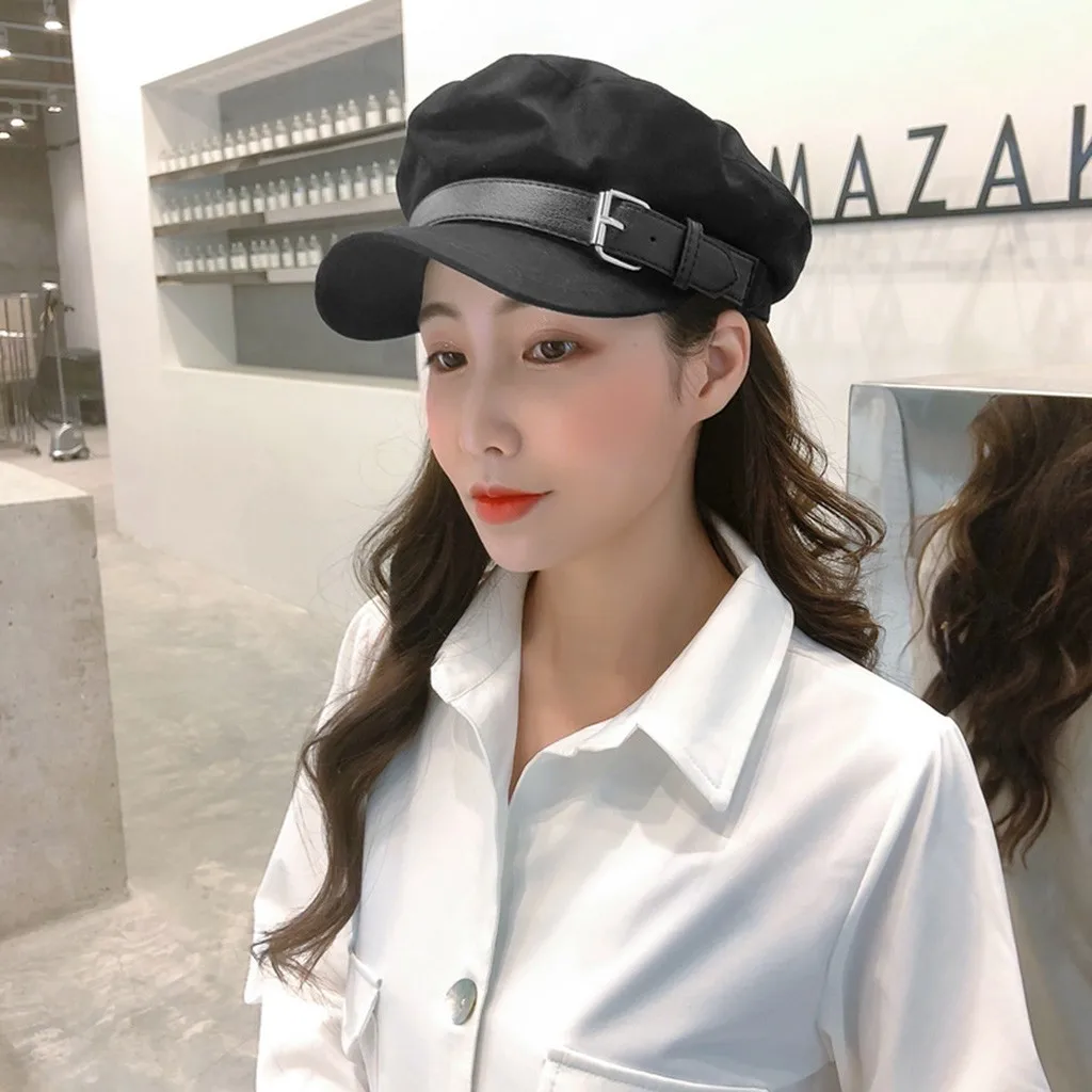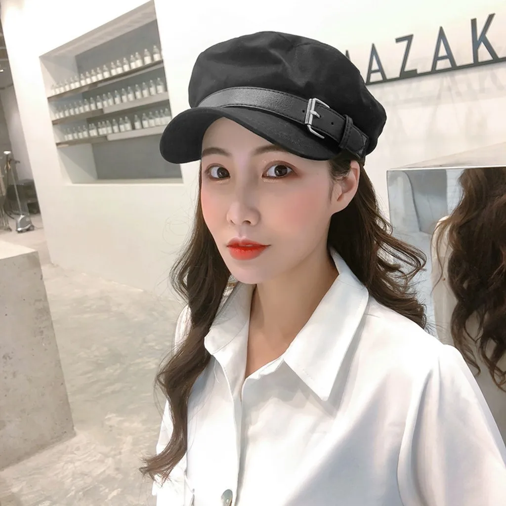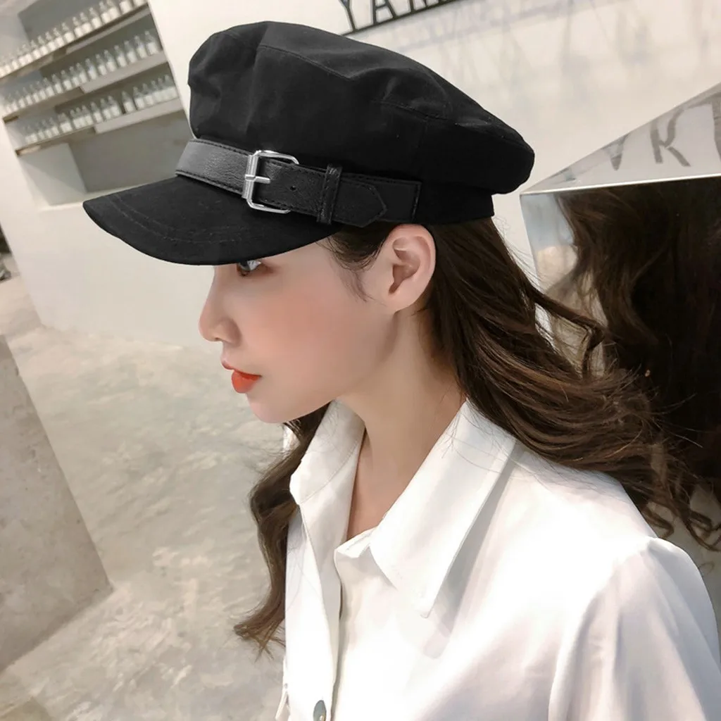Зимняя винтажная Женская однотонная шапка Ремень Кепка с пряжкой в морском стиле Кепки