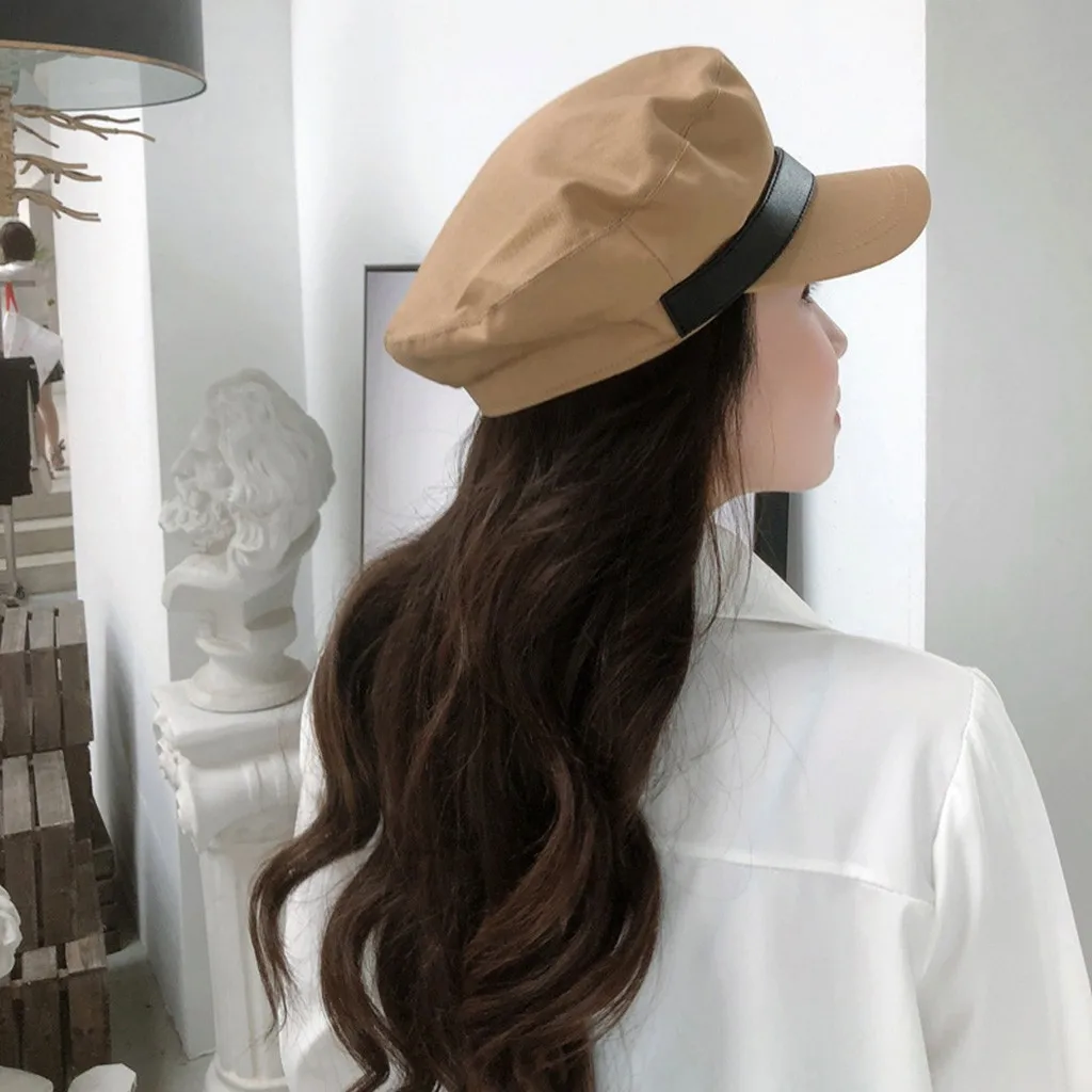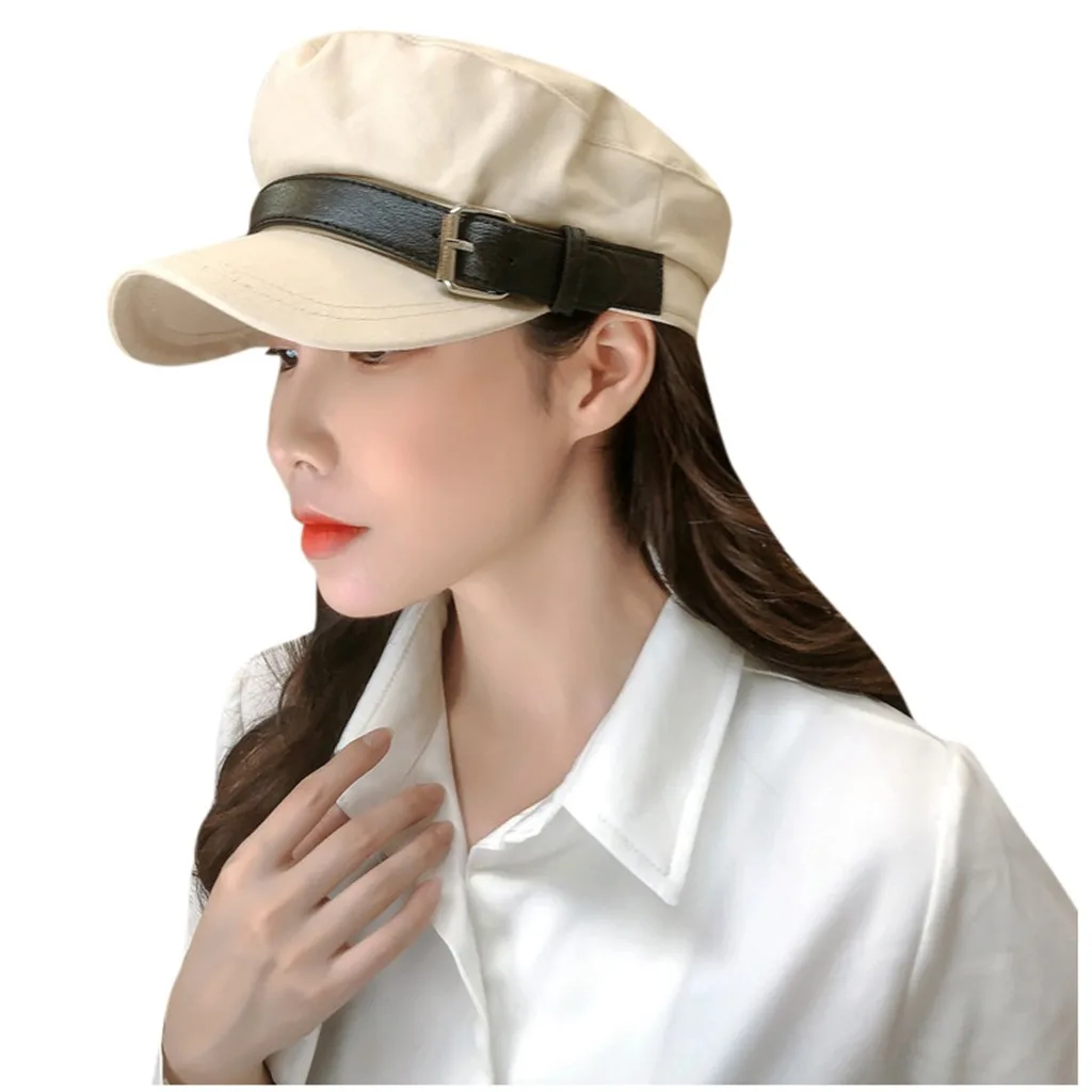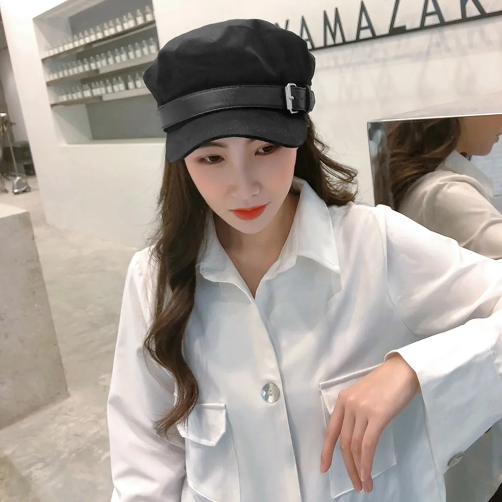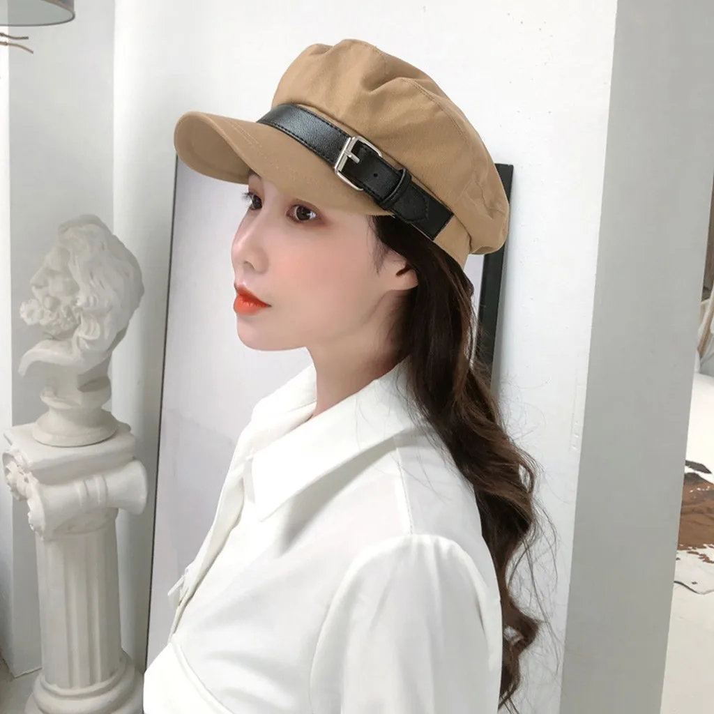 Зимняя винтажная Женская однотонная шапка Ремень Кепка с пряжкой в морском стиле Кепки