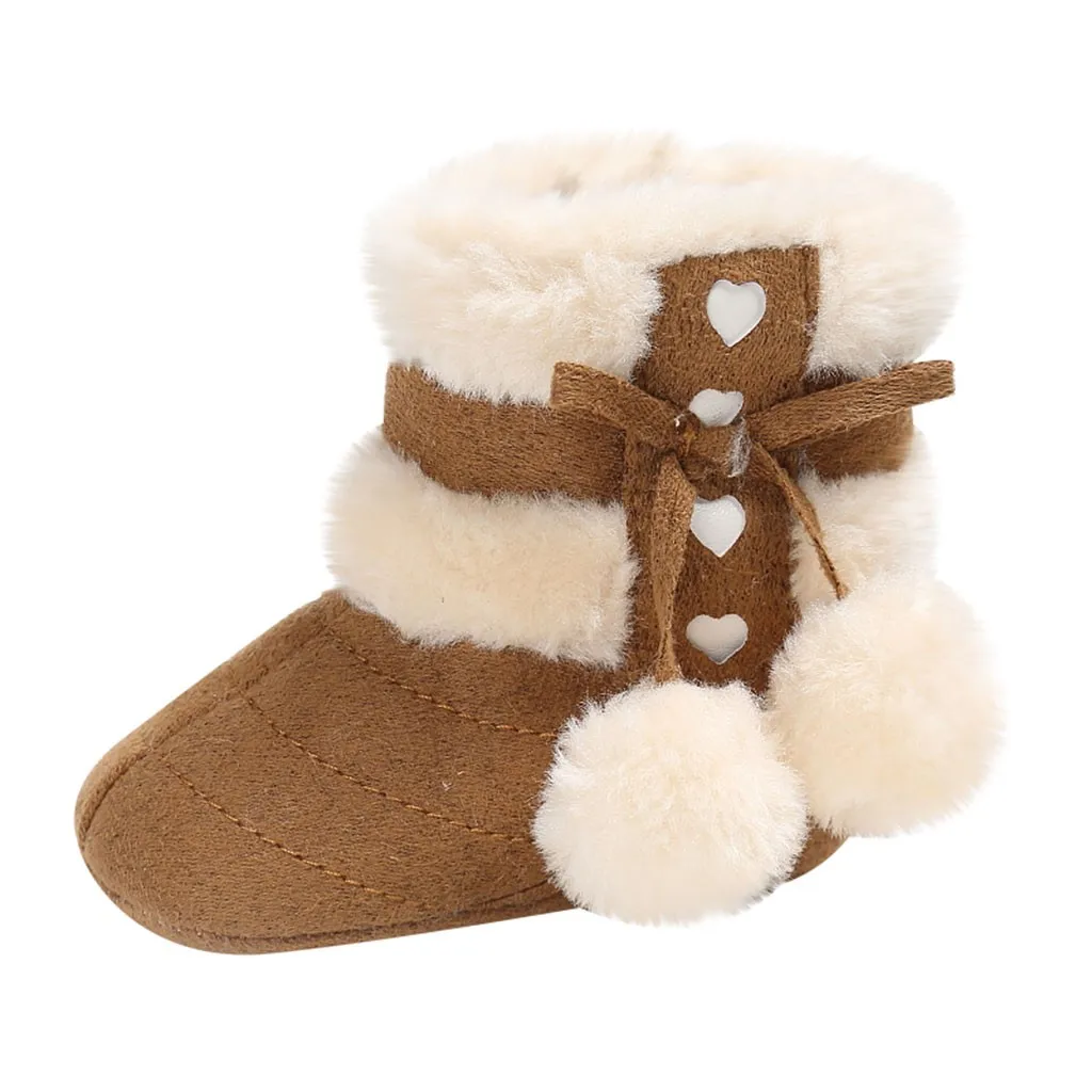 Милая зимняя обувь с бантиком и сердечками для маленьких девочек
