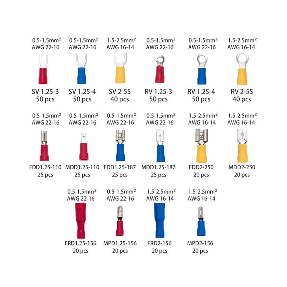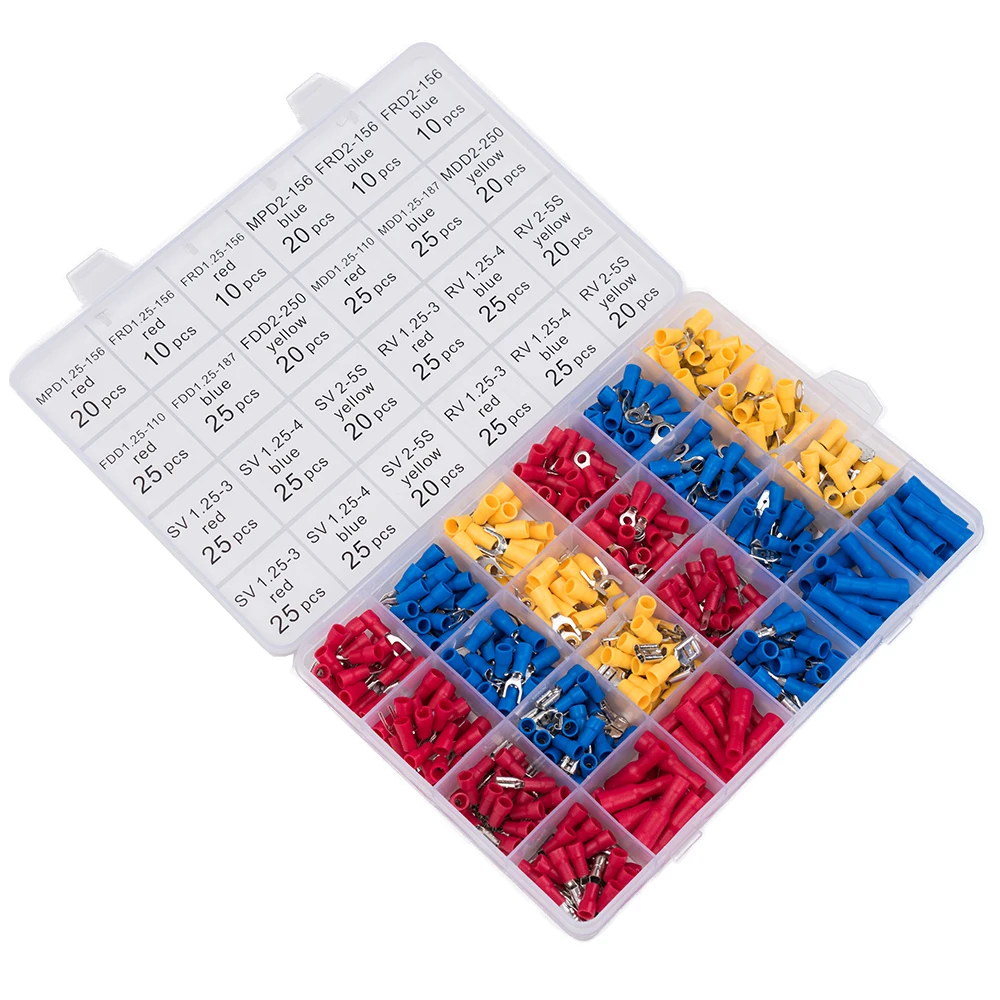 Хорошо ganized --- различные изолированные обжимные клеммы. Классификация в коробке в соответствии с моделью и цветом. Легко носить и находить.