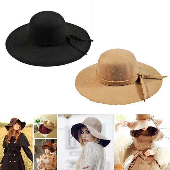 Горячая Женская винтажная кепка шерсть Широкий Бант края декор сплошной круглый верх Ретро шляпа HV99