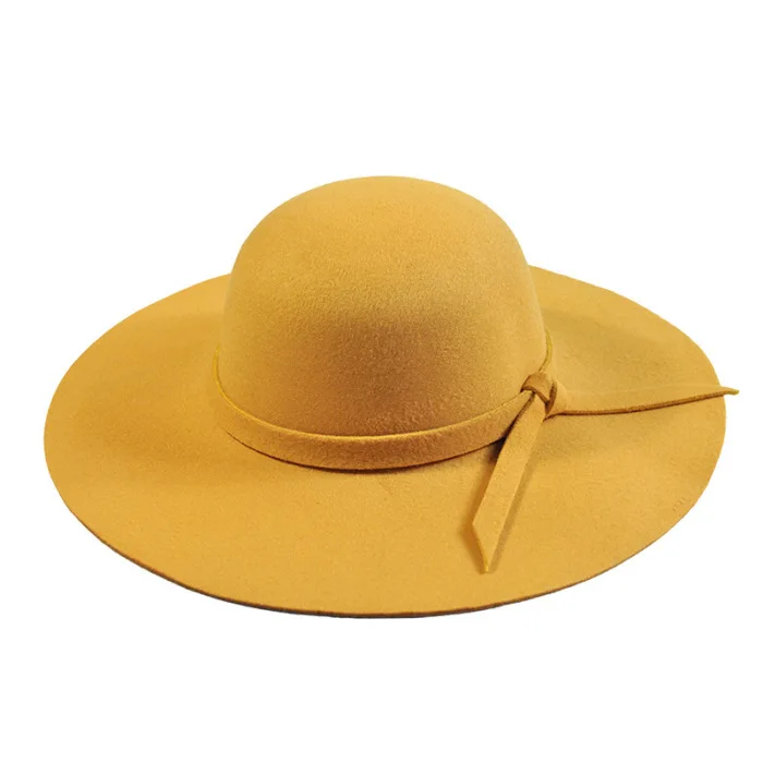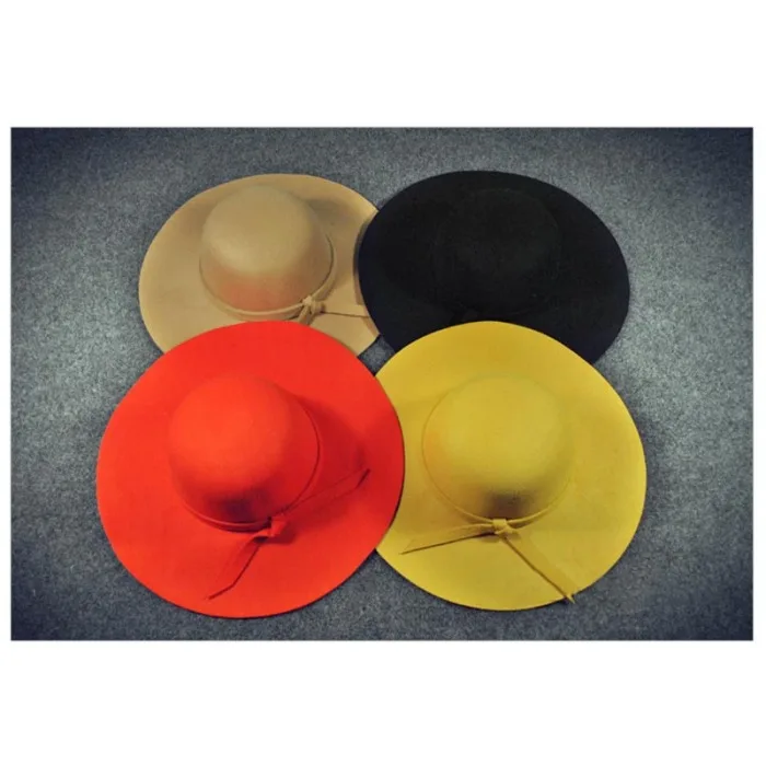 High Quality Women Vintage Cap Wool Wide Brim Bowknot Decor Solid Round Top Retro Hat NCM99