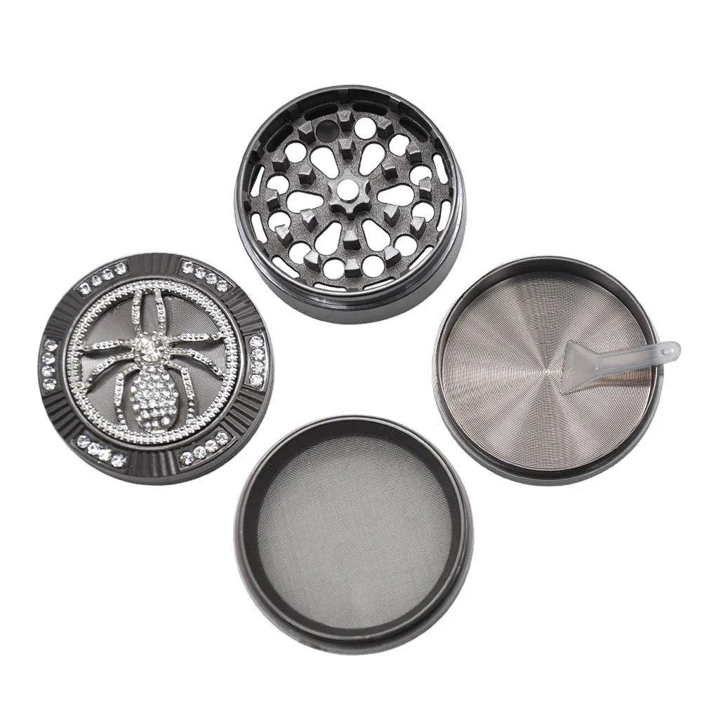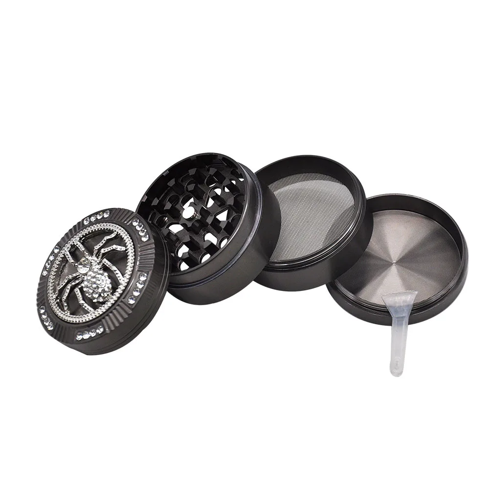 Материал: высококачественный цинковый сплав Диаметр: 50 мм/1,96 дюйма Высота: 46 мм/1,81 дюйма Вес нетто: 160 г/шт. Цвет: серый (как на фото) Слоев: 4 шт Зубы: острые алмазные зубы Использование: для резки табака Дизайн: бриллиант и паук