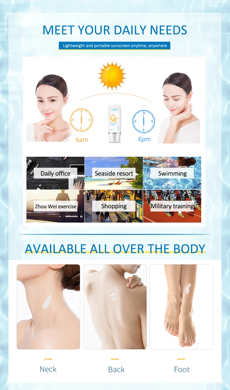 WATIANMPH SPF 50 + водонепроницаемый солнцезащитный крем для лица и тела, отбеливающий солнцезащитный крем, контроль жирности, плавание, путешествия, 40 мл