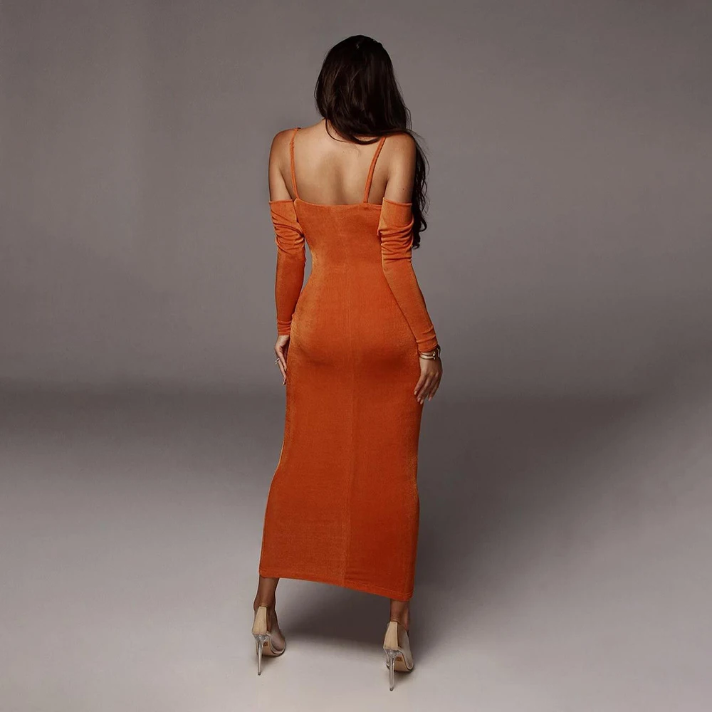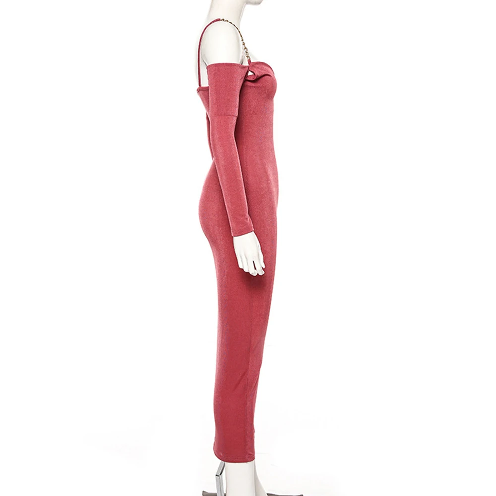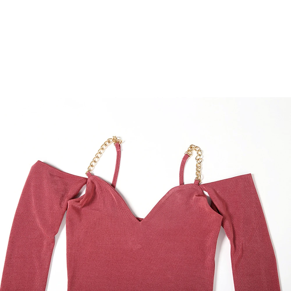Металлический ремешок-цепочка, сексуальное облегающее платье, длинный рукав, с открытыми плечами, женские обтягивающие платья-миди, Осень-зима, Сексуальные вечерние платья с открытой спиной