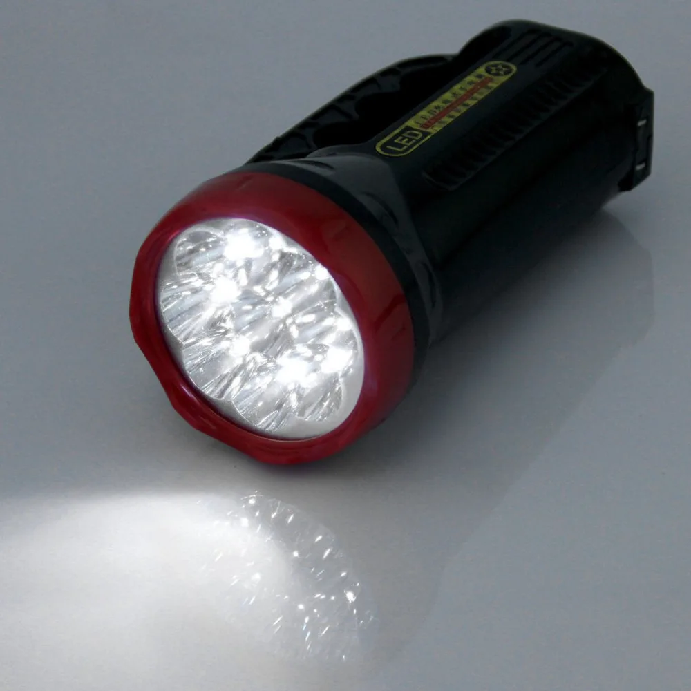 Особенности: 100% Новинка и высокое качество! Он подходит для охоты, патруля, ежедневной переноски, кемпинга, кавинга, пеших прогулок и так далее. 9 высокомощный светодиодный светильник, сильный и слабый 2 переключателя передач. Большая емкость 1000 мАч, непрерывный разряд 20 часов. Супер яркий и низкое энергопотребление. Технические характеристики: Цвет: черный и красный Товар Размеры: 16 см x 7,5 см x 7,5 см Материал: пластик Емкость аккумулятора: 1000 мАч Мощность: 5 Вт Посылка Содержание: 1 х Вспышка светильник фонарь светильник