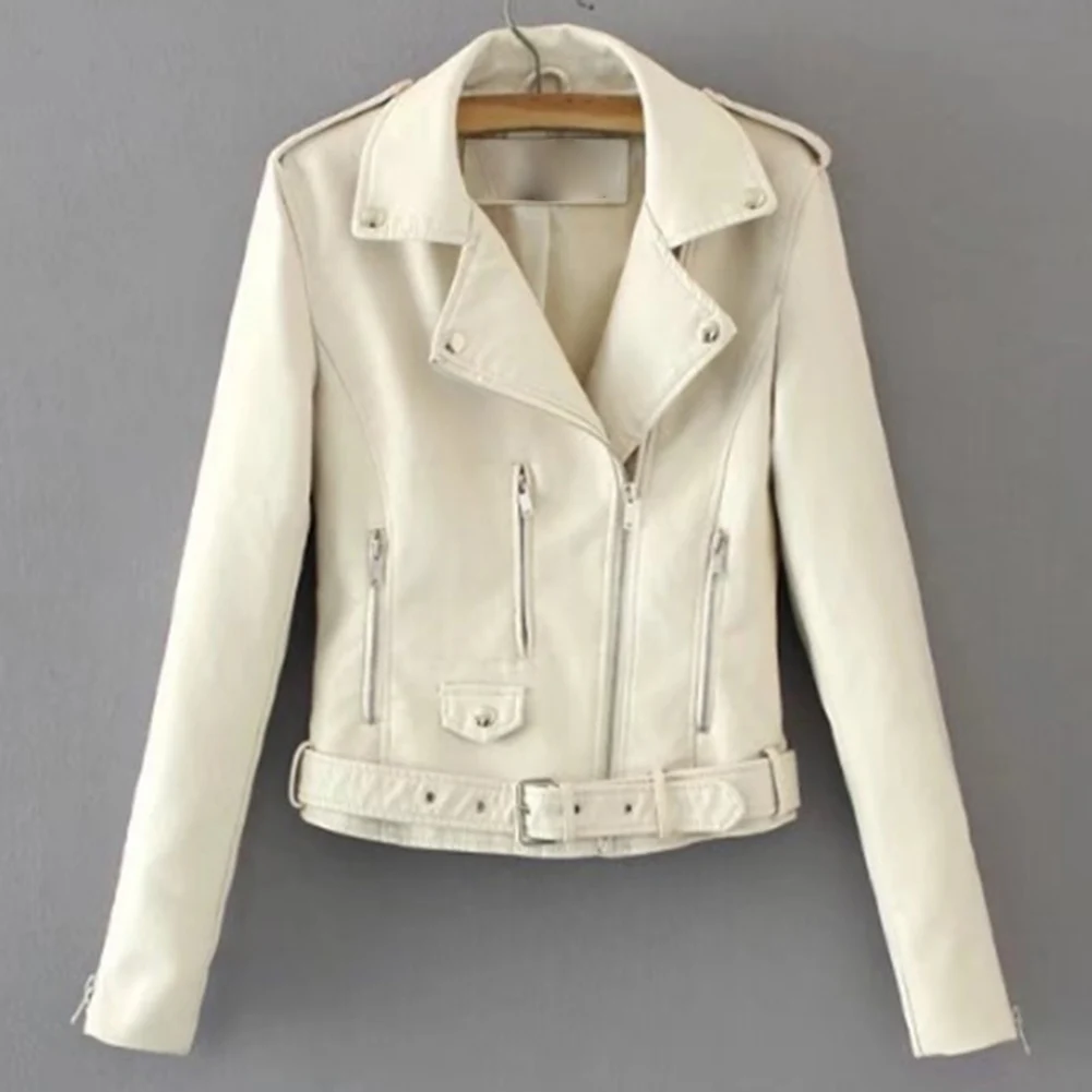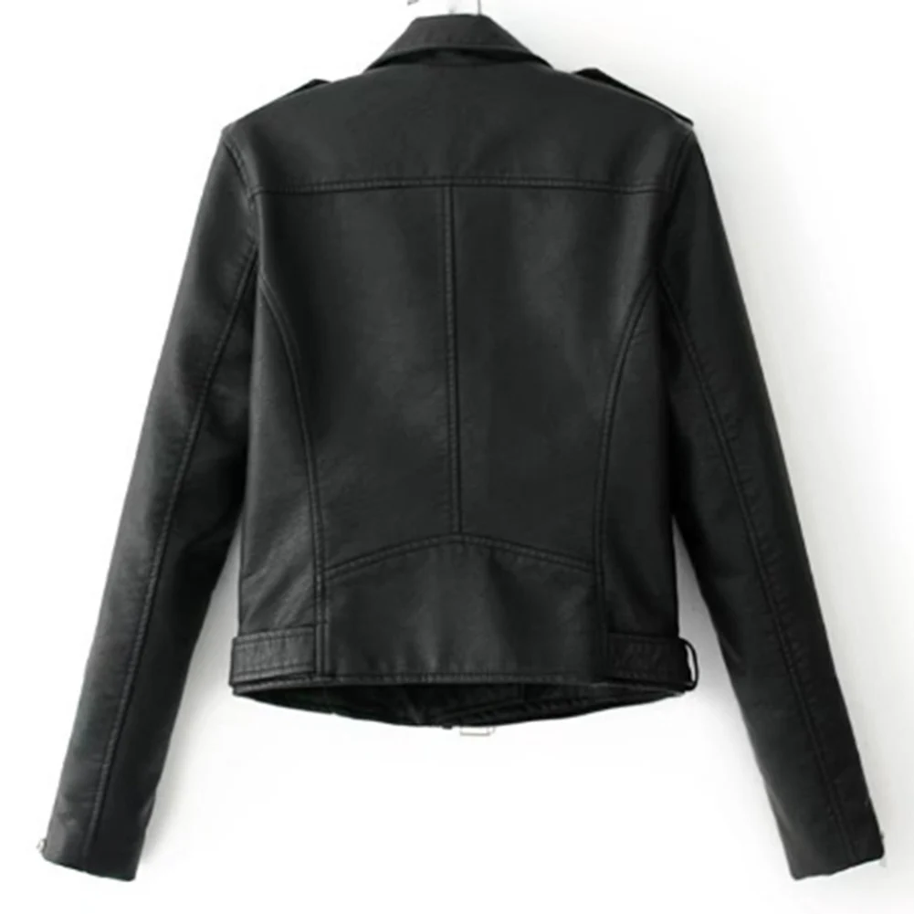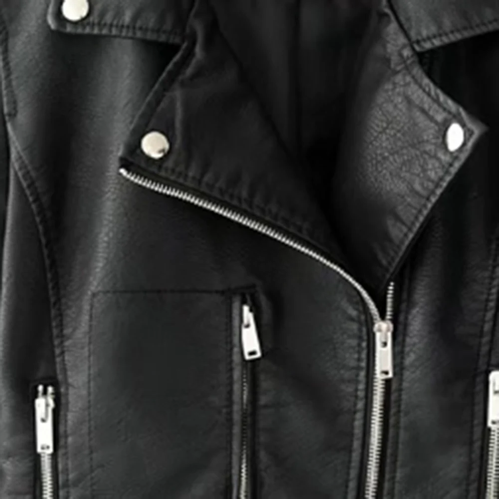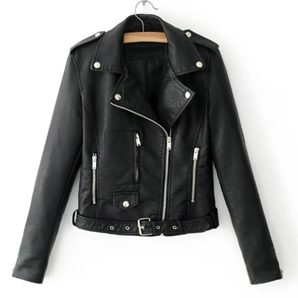 Модная женская куртка в стиле панк, кожаная мотоциклетная куртка на молнии с длинным рукавом и отворотом, короткое пальто для женщин, одежда