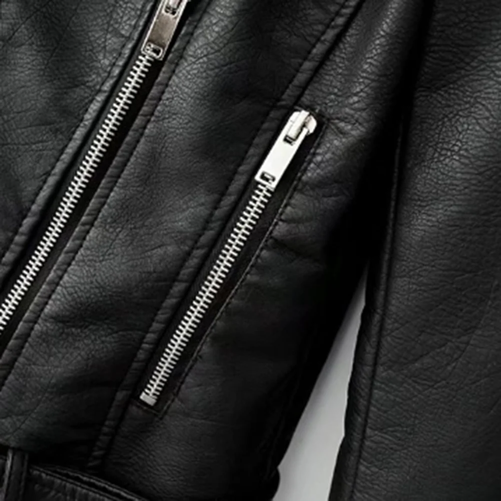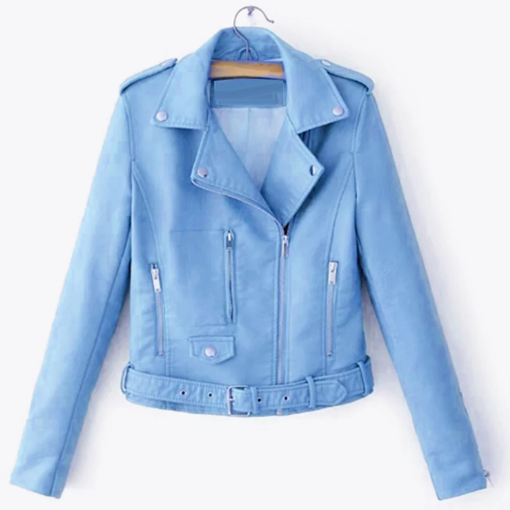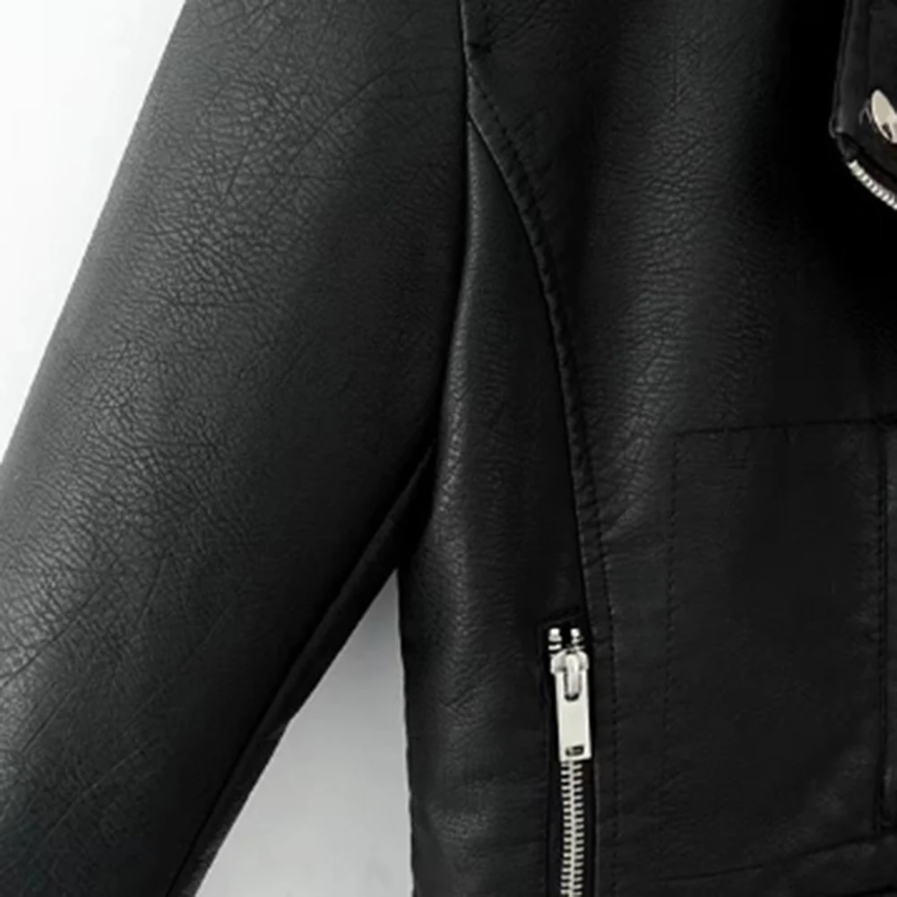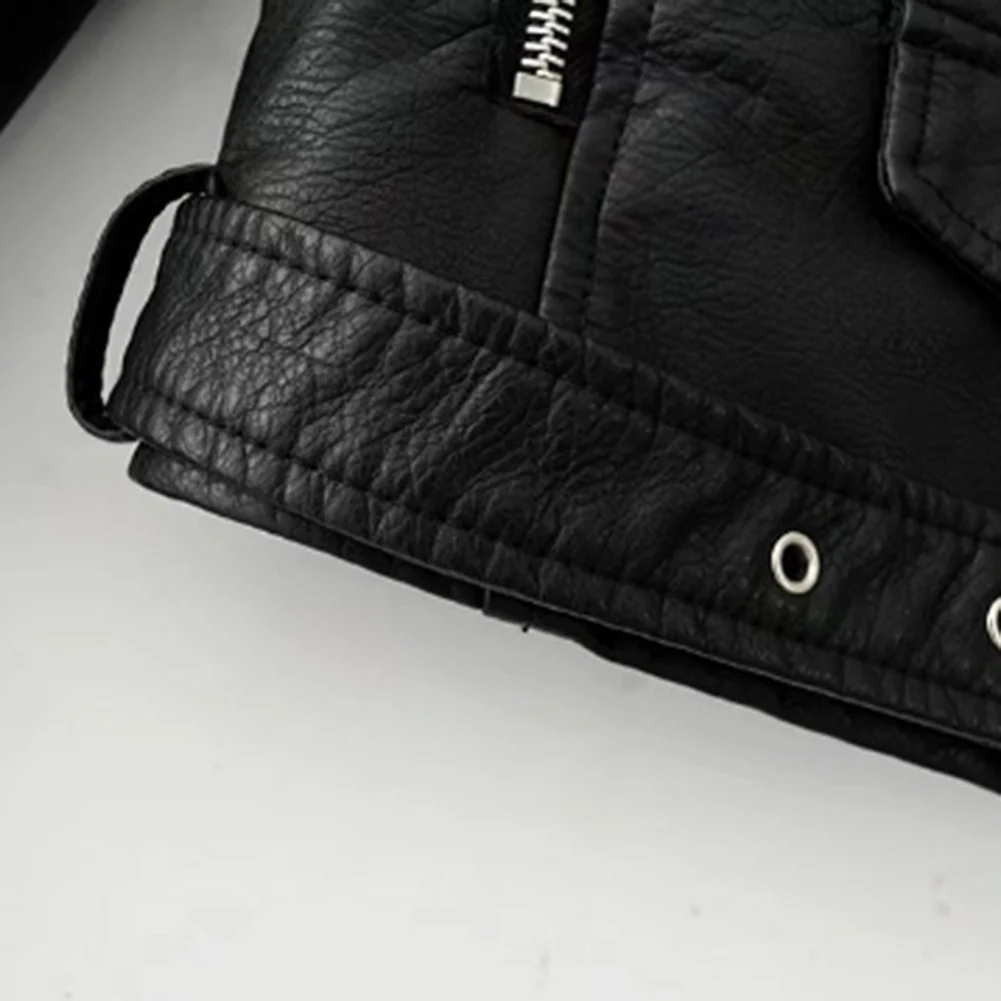 Модная женская куртка в стиле панк, кожаная мотоциклетная куртка на молнии с длинным рукавом и отворотом, короткое пальто для женщин, одежда
