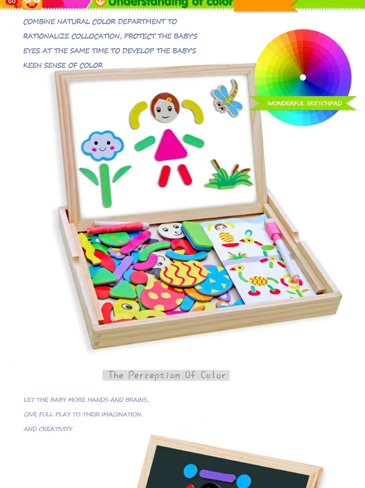 Список товаров:1 доска для рисования, 2 кисти, 70 магнитных наклеек, 1 ластик, 1 схема