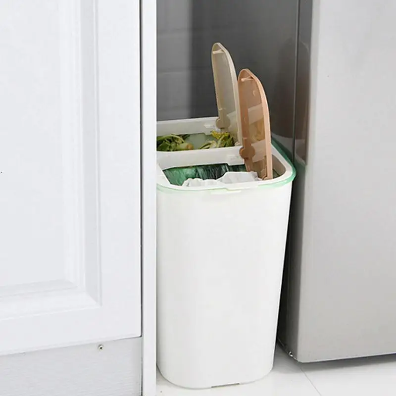 [2 в 1 двойная корзина для утилизации отходов] Экономия пространства-корзина для кухни, дома и офиса с двумя отдельными отсеками-возможность разделения отходов и гигиенической переработки-мешки для мусора могут быть закреплены в нескользящей
