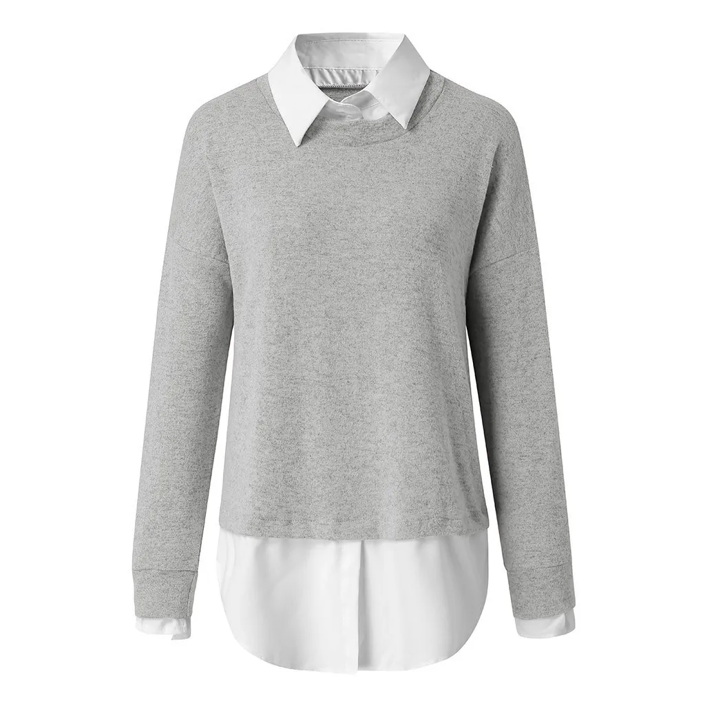 Женский свитер с длинным рукавом, теплый Однотонный свитер из двух частей на осень и зиму, трикотажная кофта, 2019
