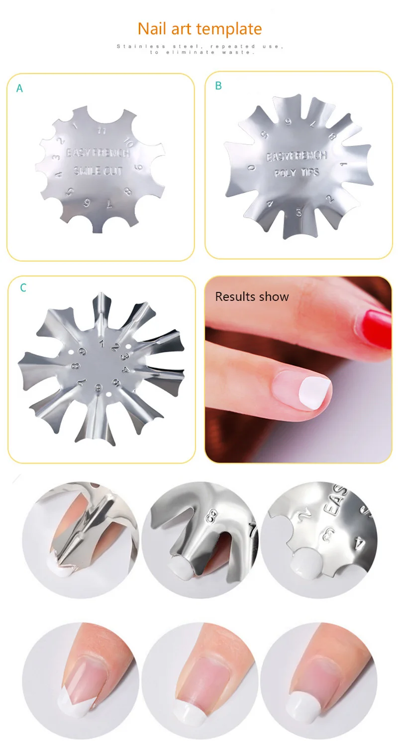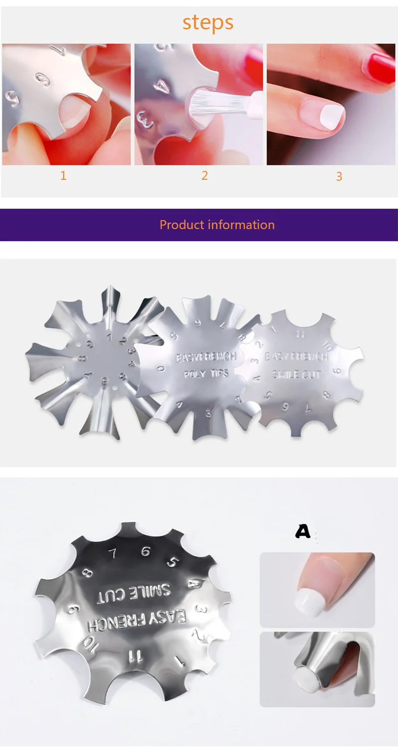 Параметры: Количество: 1 шт. Цвет: серебро Материал: нержавеющая сталь Посылка в комплект входит: 1 шт. Легкий Французский резак Особенности: 100% новый товар высокого качества. Простой инструмент для дизайна ногтей, антикоррозийный, прочный. Поможет вам сделать Идеальные французские ногти много раз. Подходит как для профессионального использования в салонах, так и для личного домашнего использования.