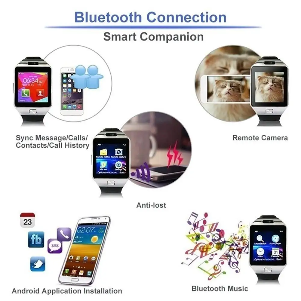 Bluetooth Smart Watch GSM Camera New TF Card Phone Wrist Watch For Android Smart Watch Steps Track Sleep Mode #M2