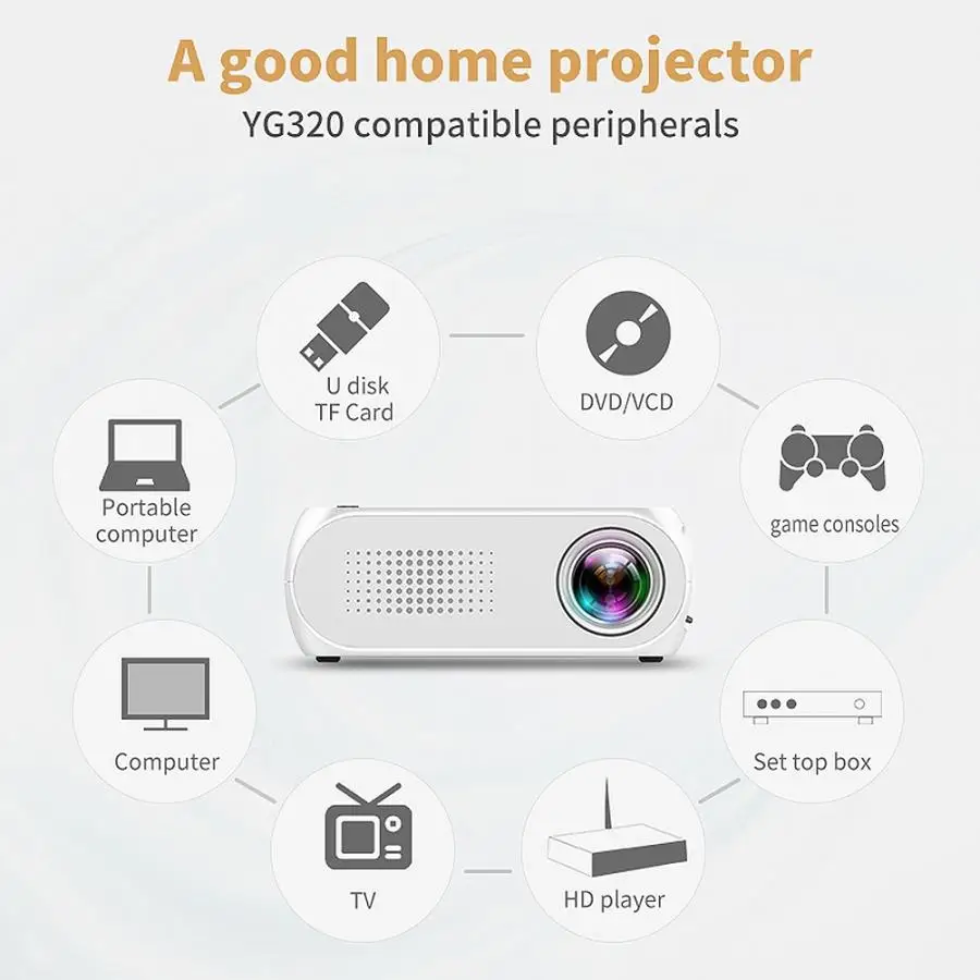 Многоцелевая машина поддерживает несколько соединений устройств. Встроенный аккумулятор 1300 мАч, может использоваться без источника питания, поддерживает мобильный источник питания. Большой проекционный экран 20-60 дюймов можно подключить к компьютеру через кабель HD. Можно подключить к динамику 3,5 мм. Поддержка U диска и карты памяти (в пределах 32G). Поддержка китайского, английского и других 23 языков, более удобный.