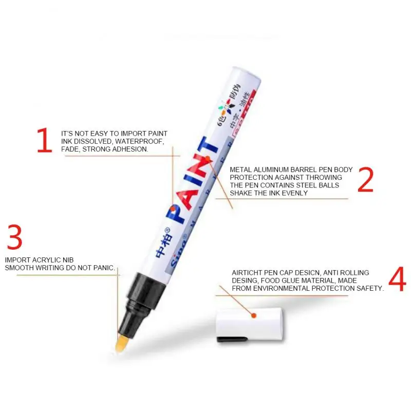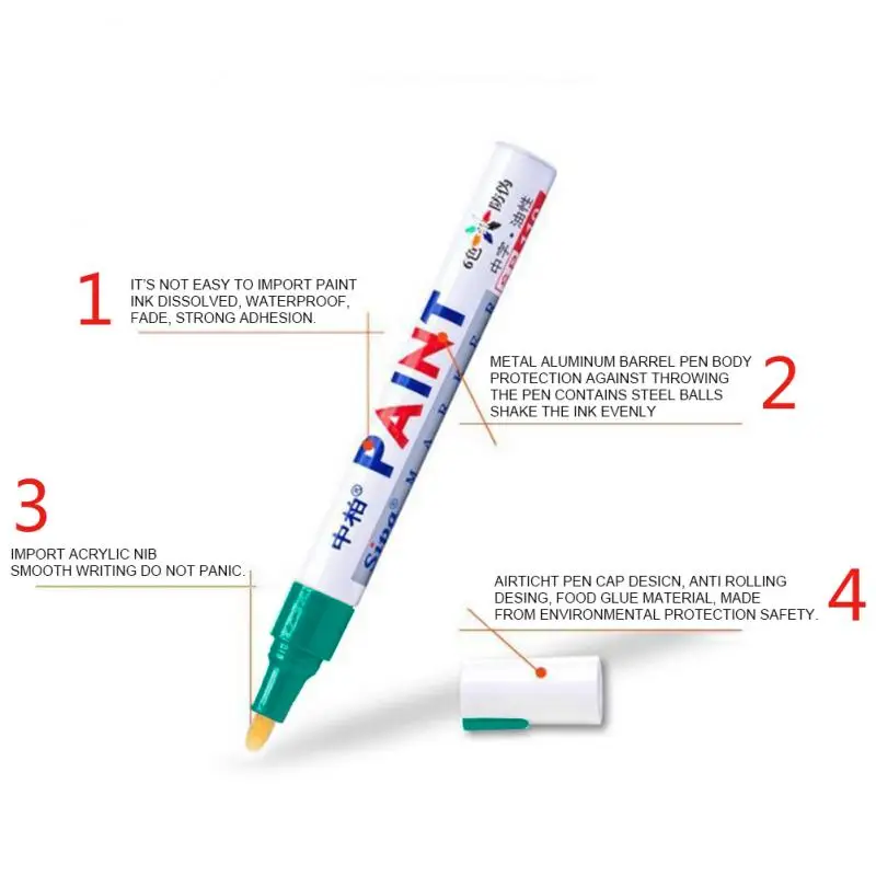 Чернила яркие и долговечные. Сильная адгезия и не легко растворяется. Быстрое высыхание, водонепроницаемость, прочность на светильник, устойчивость к выцветанию, высокая термостойкость. Подходит для любой гладкой поверхности. Импортные чернила, не легко растворяются, светильник быстро, водонепроницаемый и не выцветает. Импортные высококачественные ручки, прочные и не испорченные. Изготовлен из пищевого клея, он безопасен для окружающей среды.