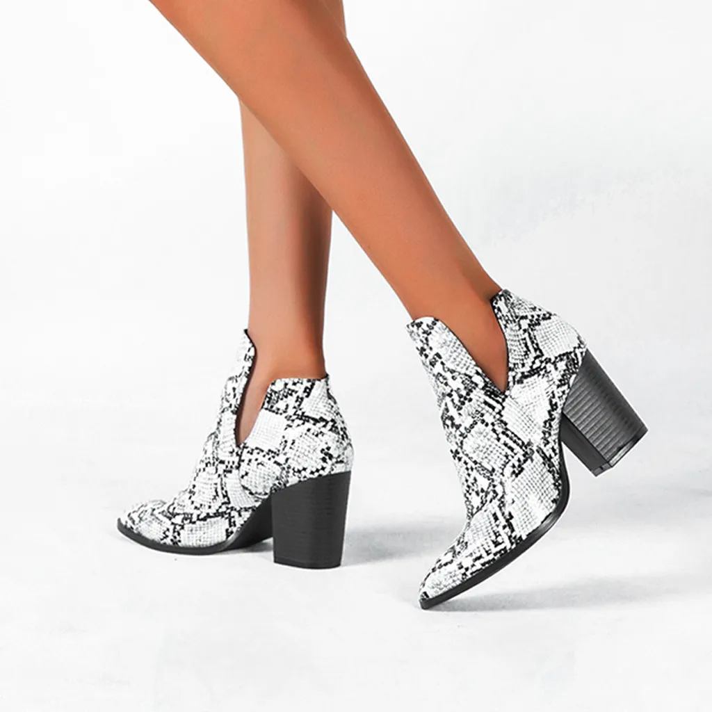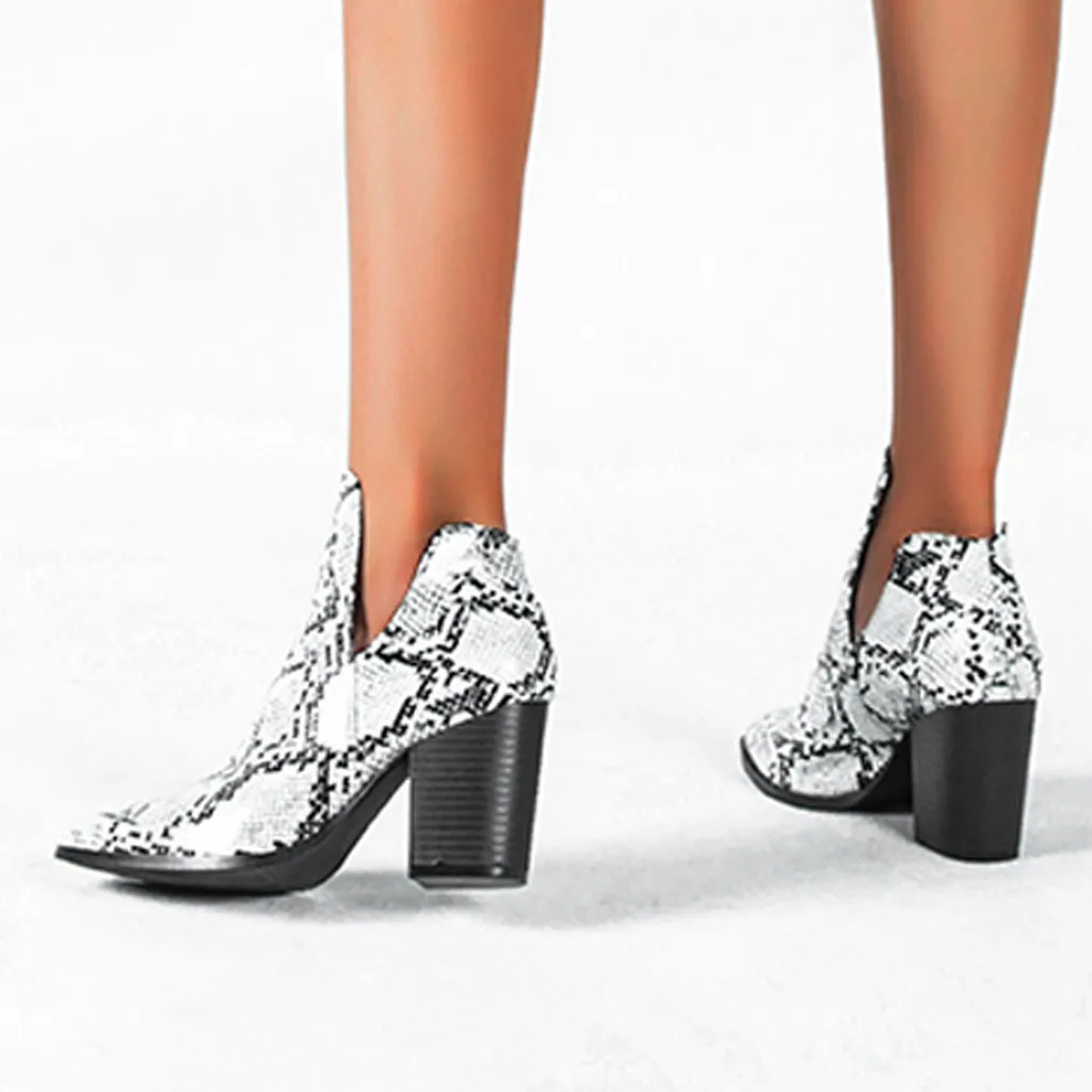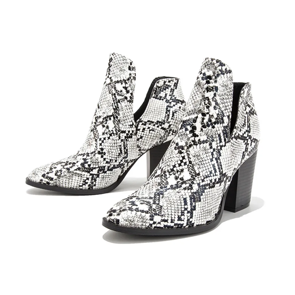 Женские модные ботинки с острым носком на высоком каблуке со змеиным узором новые ботинки большого размера