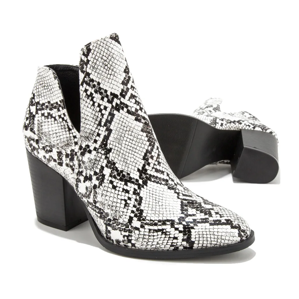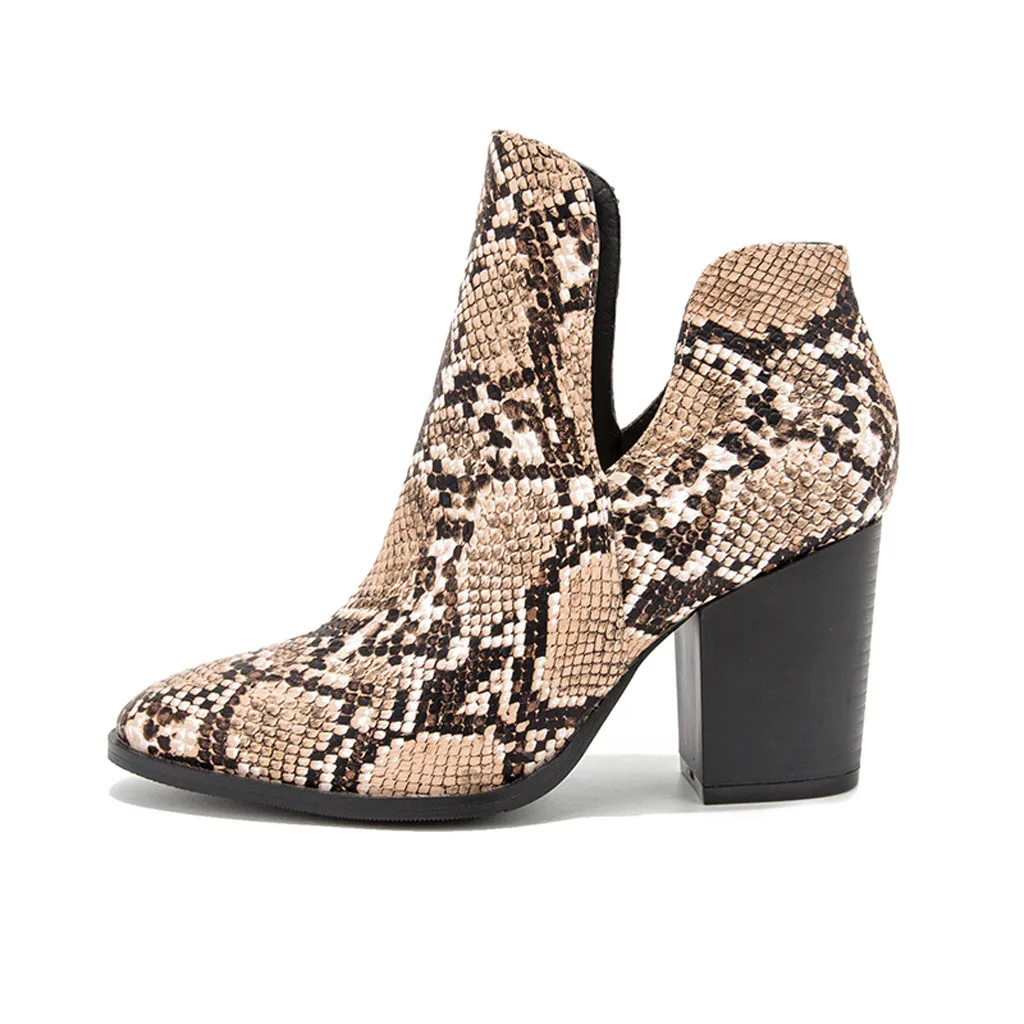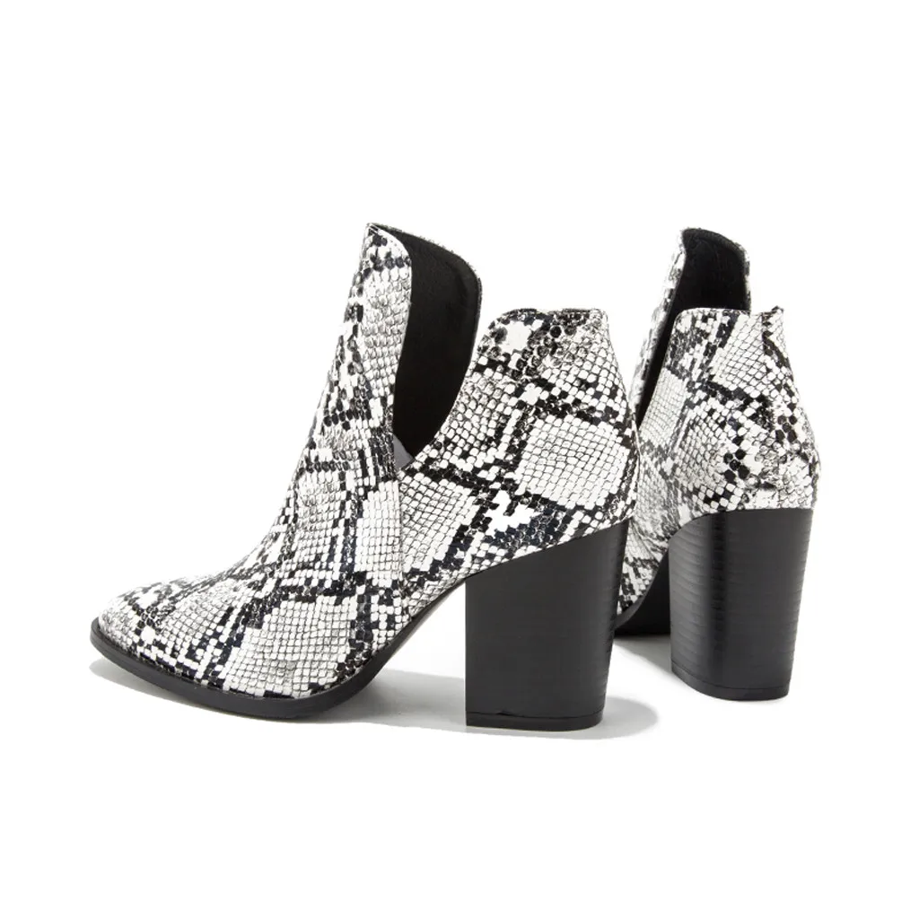 Женские модные ботинки с острым носком на высоком каблуке со змеиным узором новые ботинки большого размера