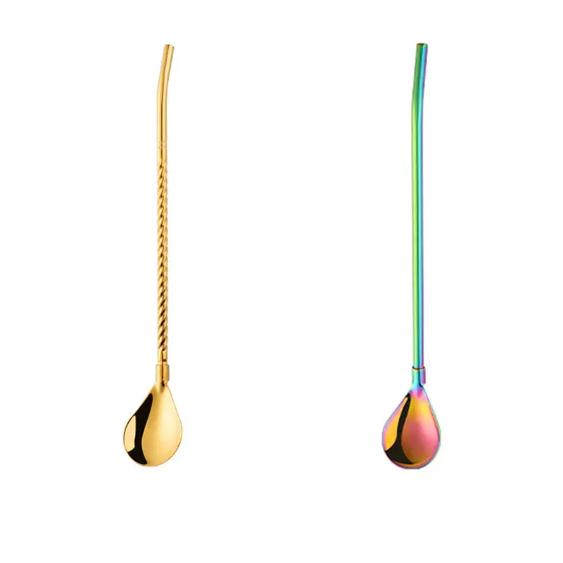 Длинная витая соломенная ложка портативная многоразовая цветная Коктейльная перемешивающая ложка