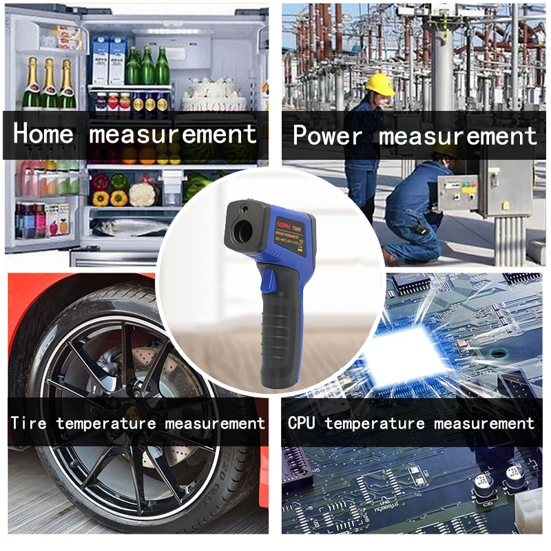 ** Широкое применение: инфракрасная технология удобна для измерения температуры поверхности различных объектов, идеально подходит для приготовления пищи и приготовления барбекю, выполнения автообслуживания и многого другого.