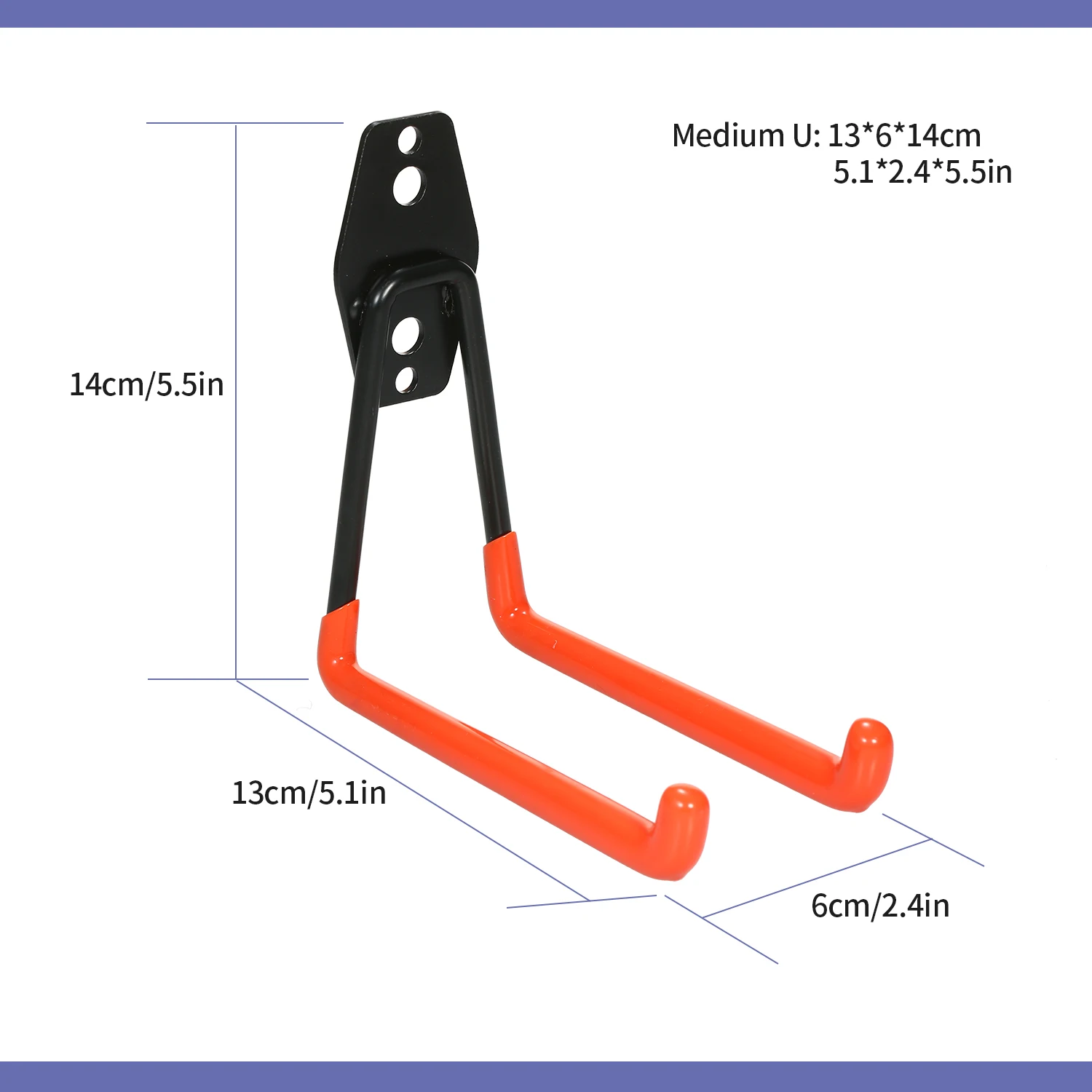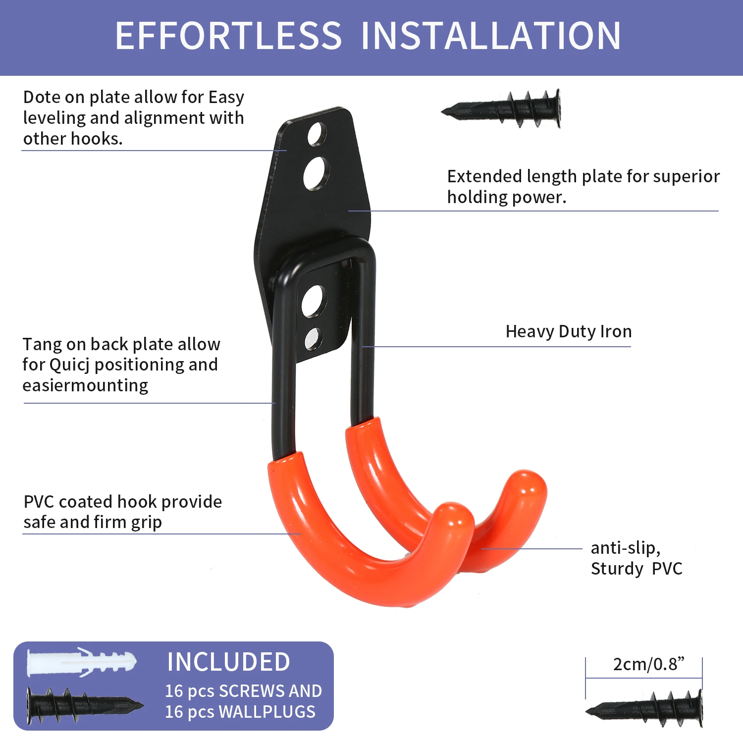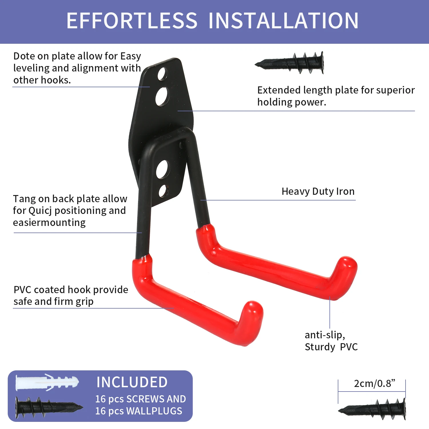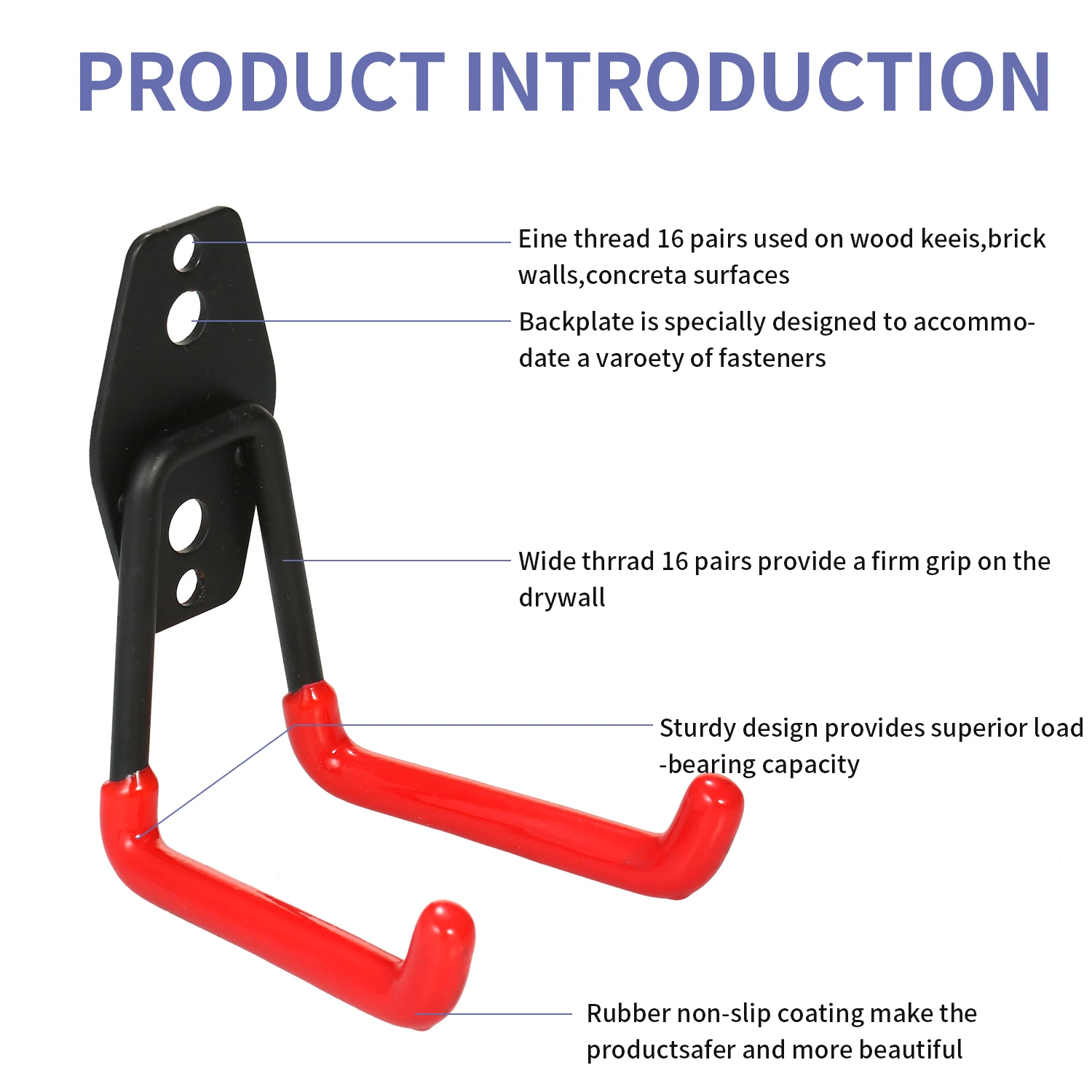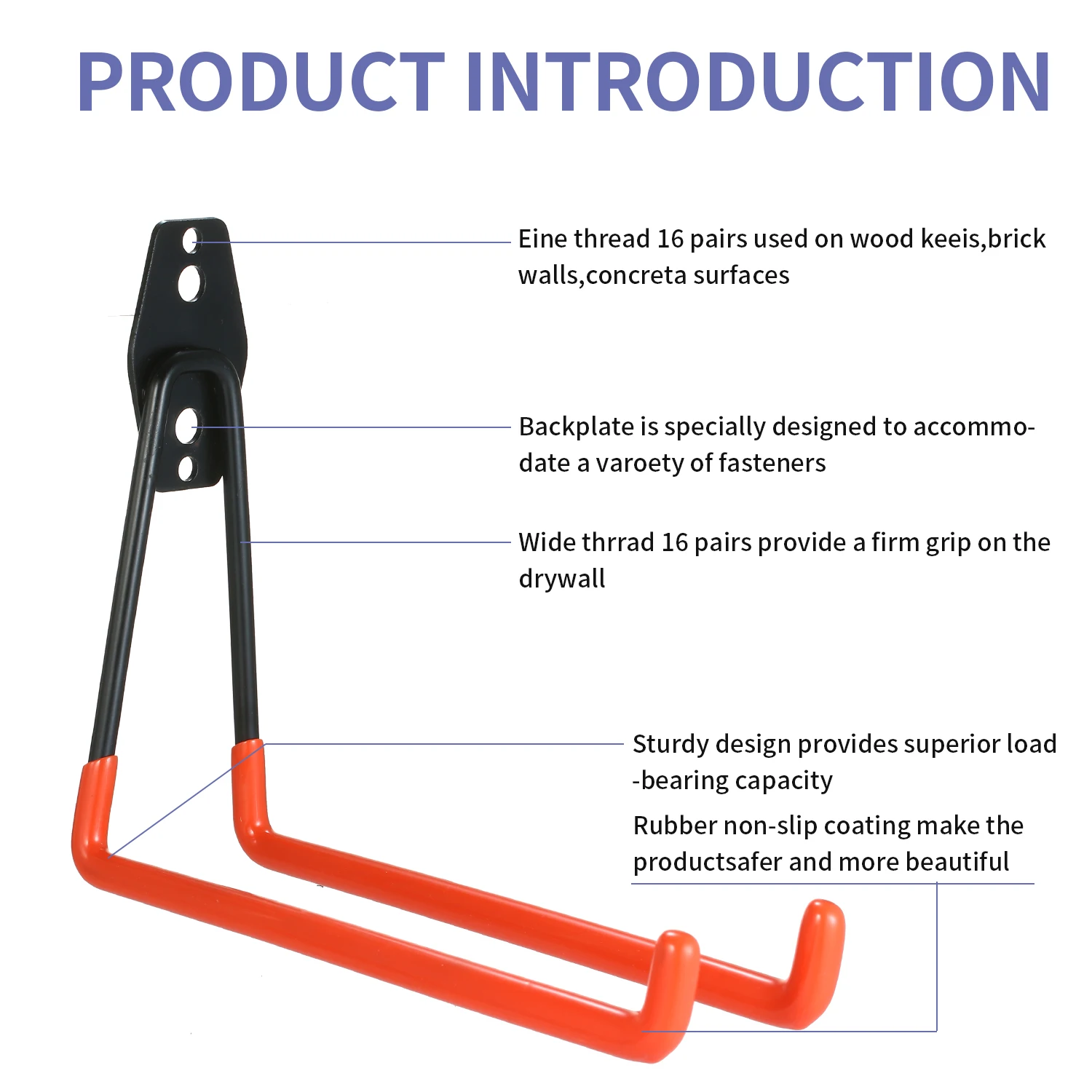 Превосходная грузоподъемность --- этот крюк с безупречной грузоподъемностью от 30 до 50 кг, эти гаражные Крючки идеально подходят для подвешивания лестниц, садовых шлангов, садовых инструментов и многого другого.