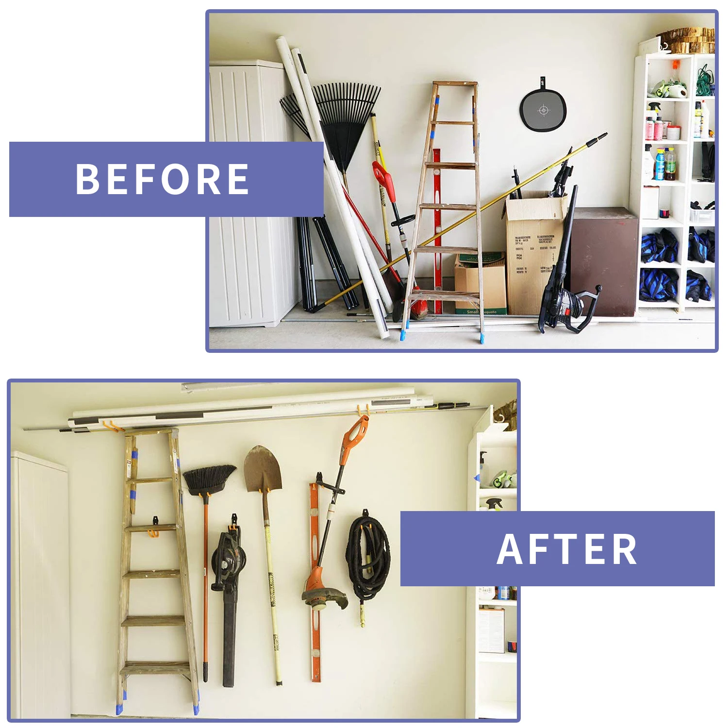 Экономия места --- наши сверхмощные гаражные крючки отлично подходят для организации, особенно с складные кресла лестницами, велосипедами, инструментами, садовыми шлангами, каяками, пиломатериалами, спортивным инвентарем и другими громоздкими предметами. Сделайте ваше пространство аккуратным и организованным, отлично подходит для оптимизации работы, экономит ваше время.