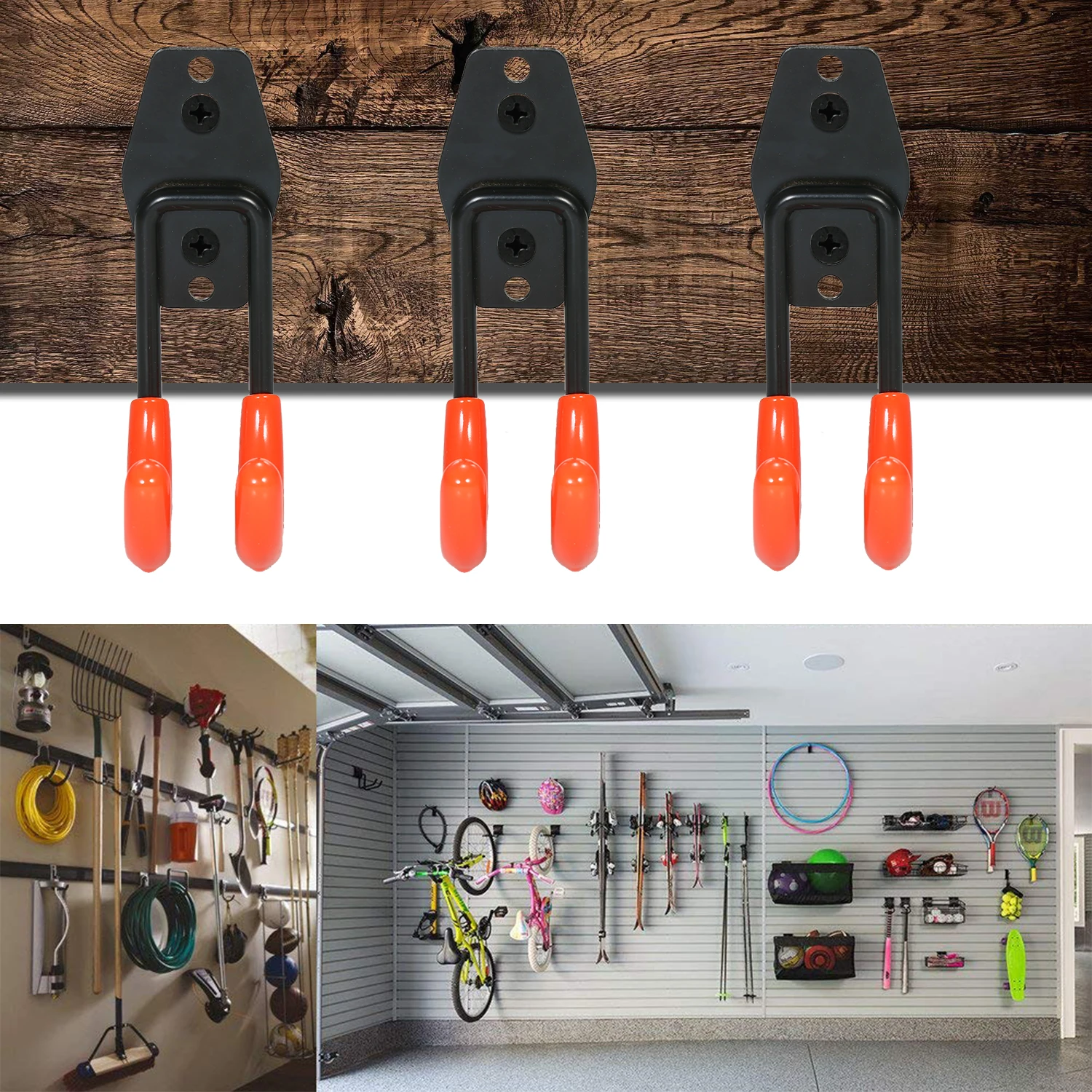 Высококачественные сверхпрочные металлические двойные крючки премиум-класса с железной проволокой толщиной 2 мм и железной проволокой толщиной 6 мм, которые могут удерживать различные инструменты очень прочно, включая лопату, метлу, электроинструменты, велосипед, w e d eater, лестница и т. д.