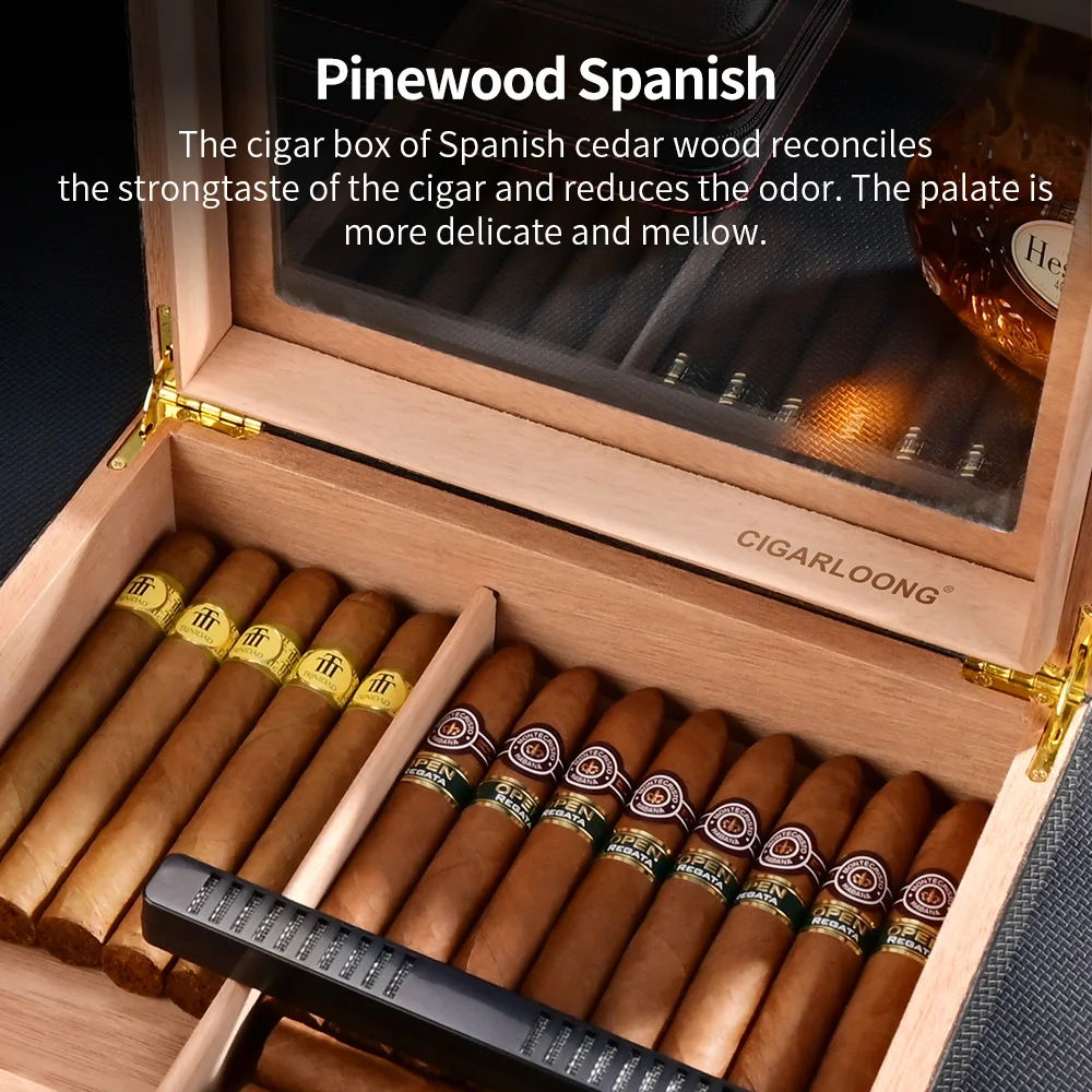 Портативный чехол для сигар из Испании, деревянный дорожный увлажнитель для сигар, набор с увлажнителем и гигрометром, ящик для хранения углеродного волокна, CLA-2019JKb