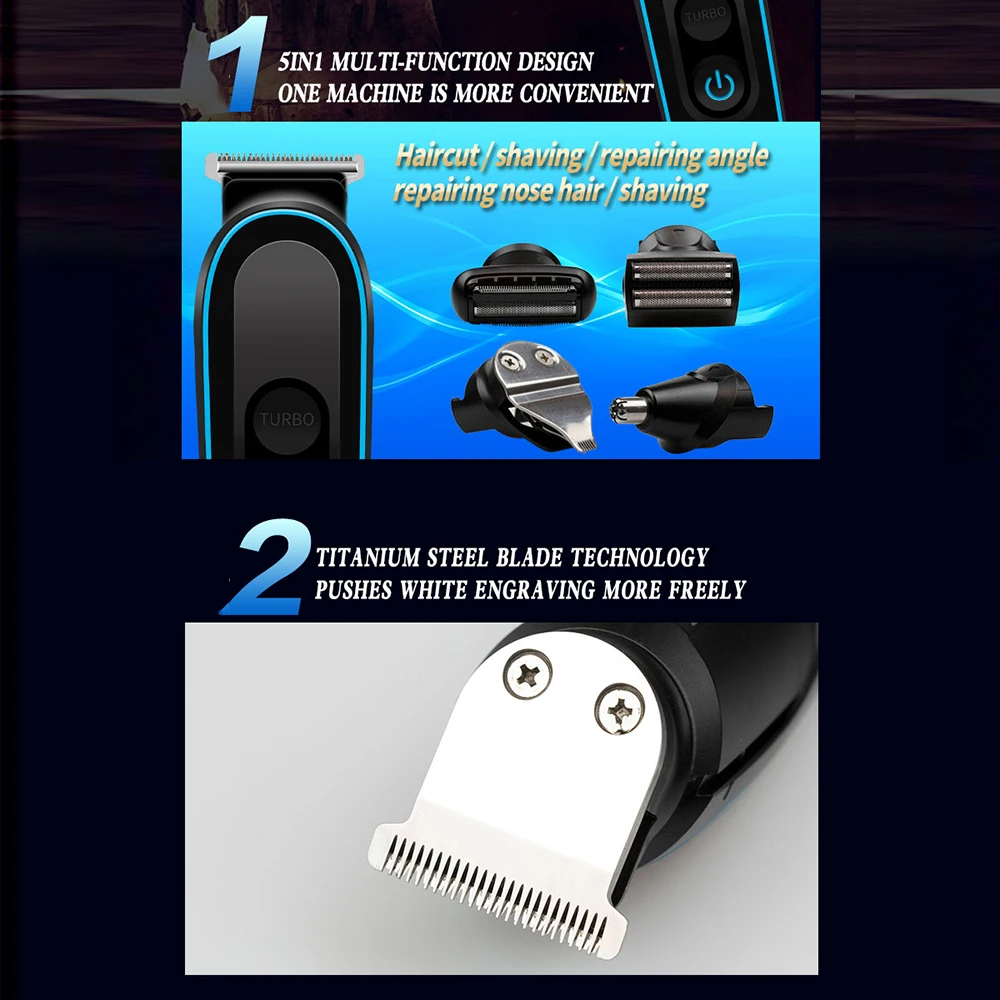 Посылка включает в себя: 1 x триммер, 5 x триммер, 1 x Руководство пользователя, 1 x зарядный кабель, 1 x щетка для чистки