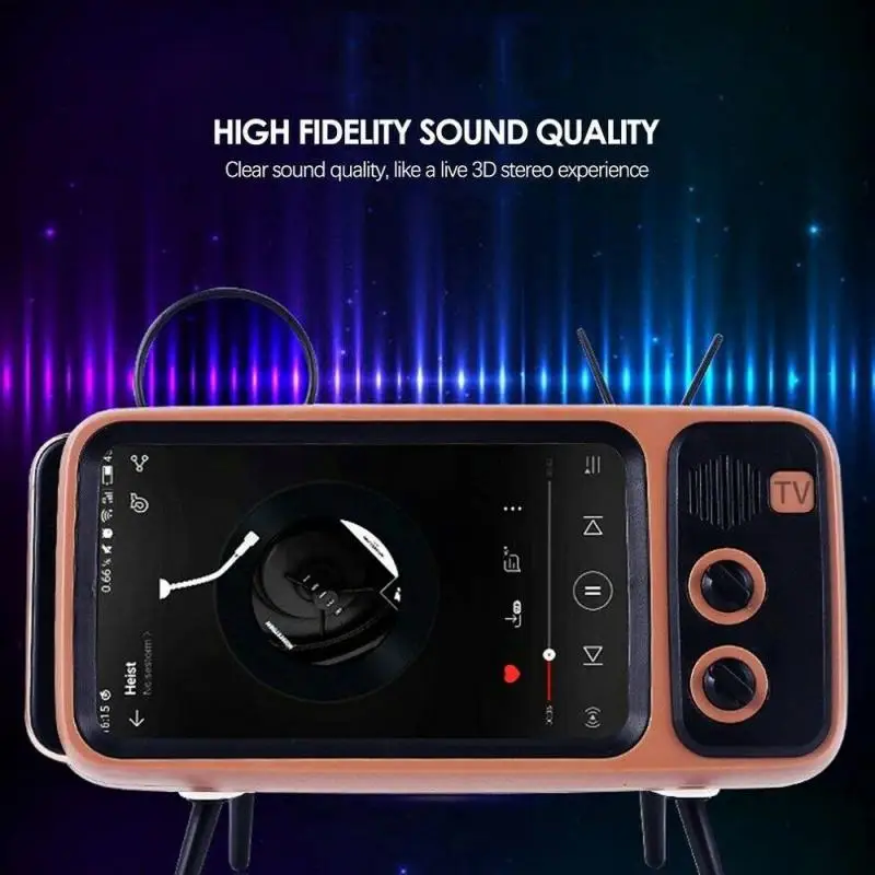 Особенности: мини, портативный, беспроводной, бас, Ретро ТВ-форма, держатель для телефона