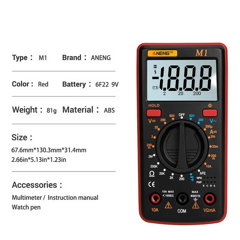 -Компактный дизайн: этот небольшой, легкий мультиметр удобно лежит в руке, легко переносить и хранить.