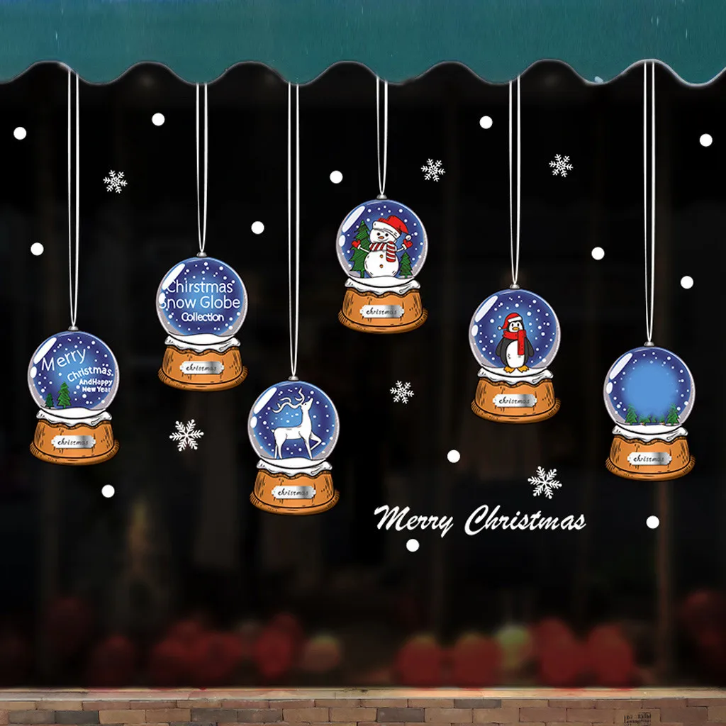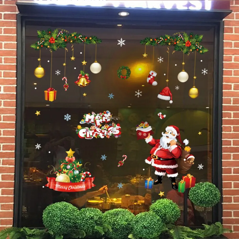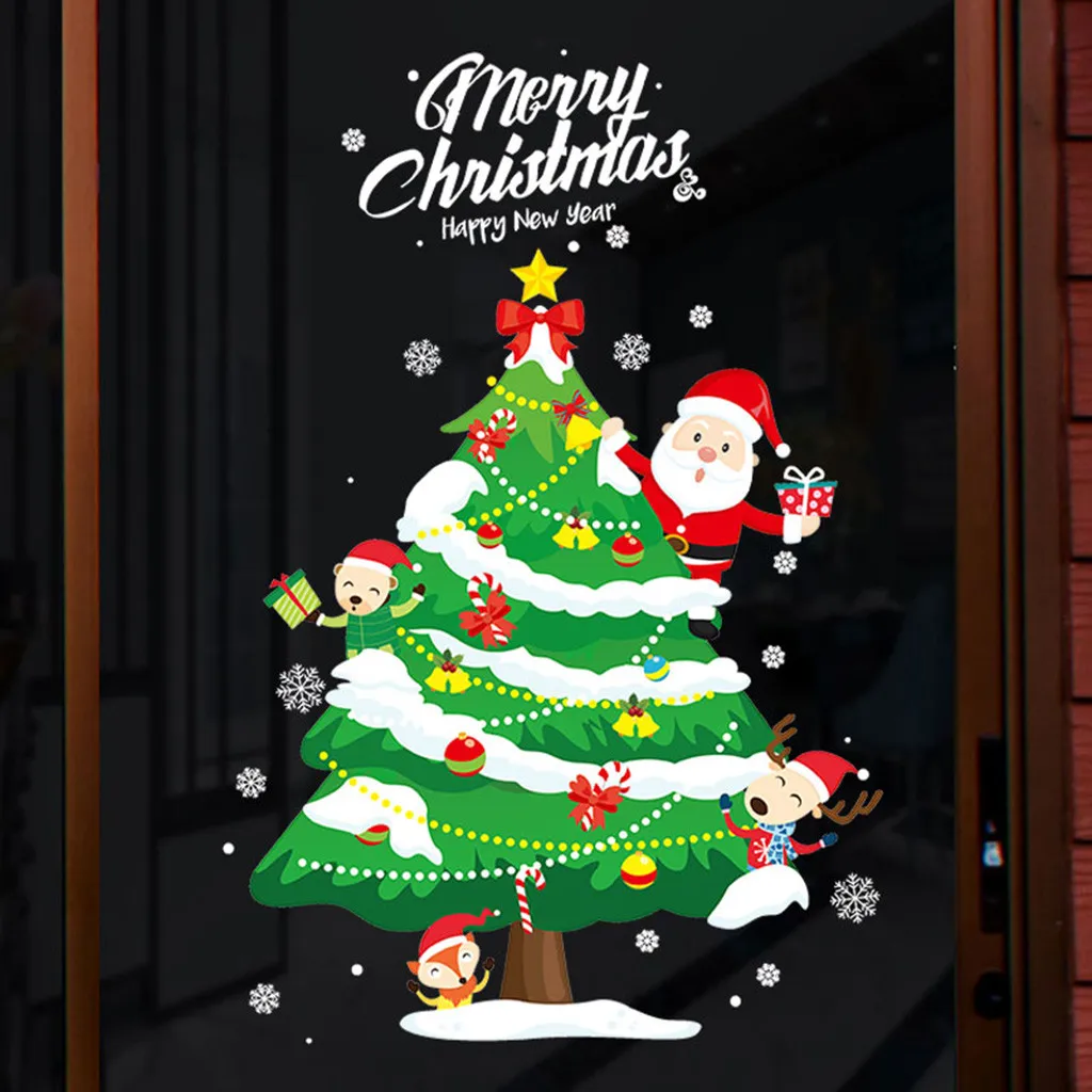Новогодняя 2020 Рождественская Зеркальная Наклейка с изображением снеговика Санты на окно, Рождественский Декор для дома, подарки, прозрачная стеклянная наклейка, Рождественская оконная наклейка s