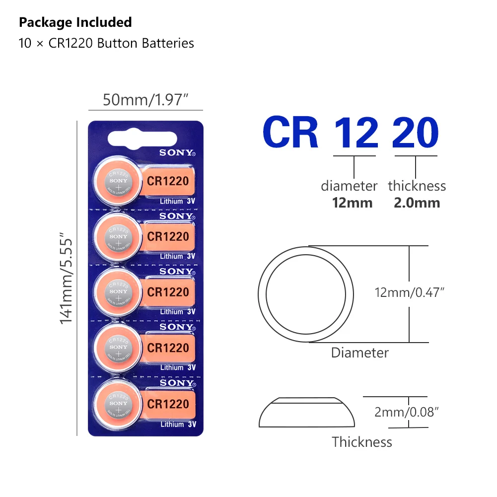 10pcs/lot For Sony Original CR1220 Button Cell Battery For Watch Car Remote Key cr 1220 ECR1220 GPCR1220 3v Lithium Batteries