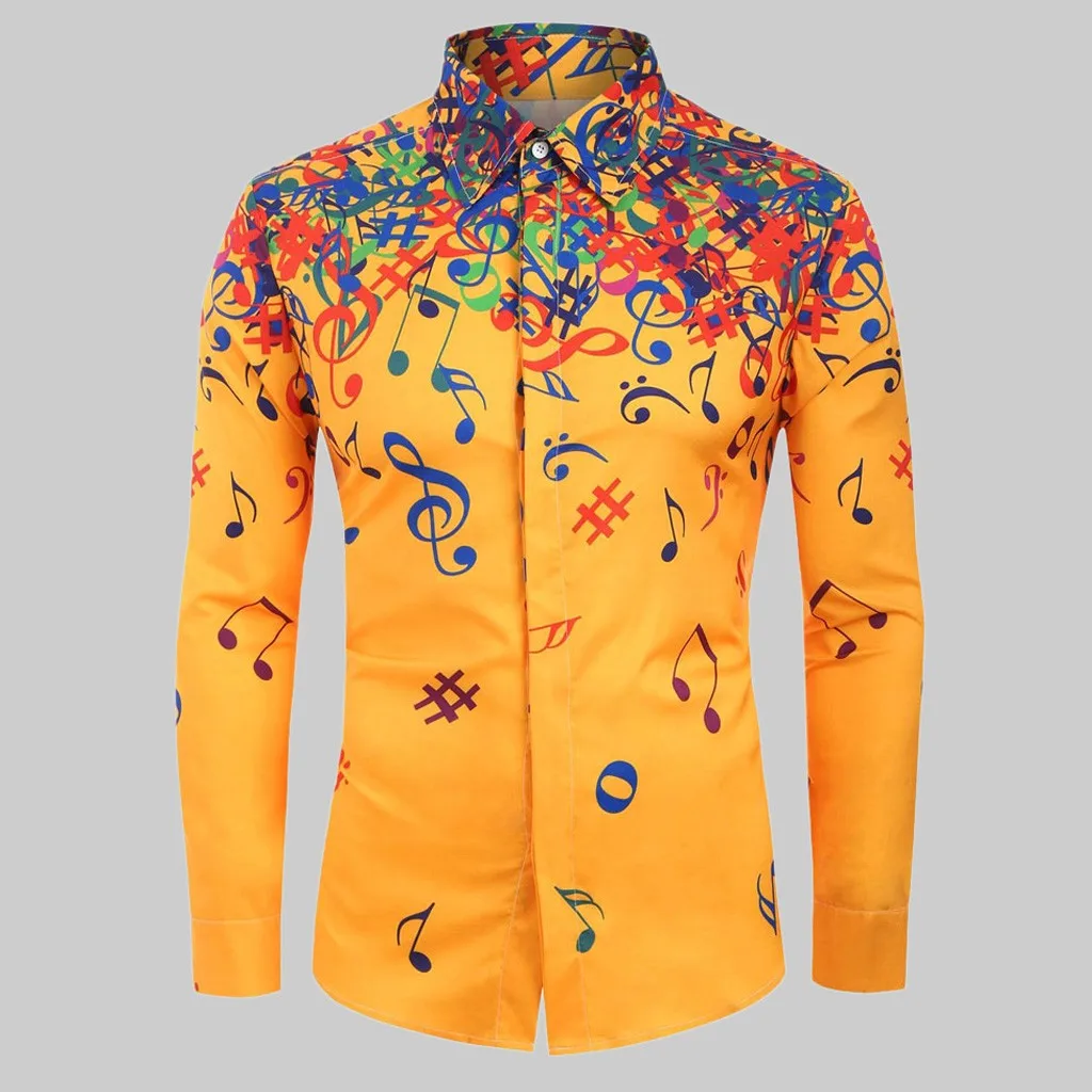 Мужская Повседневная рубашка с музыкальными нотами, Повседневная рубашка с длинными рукавами, топ, блузка