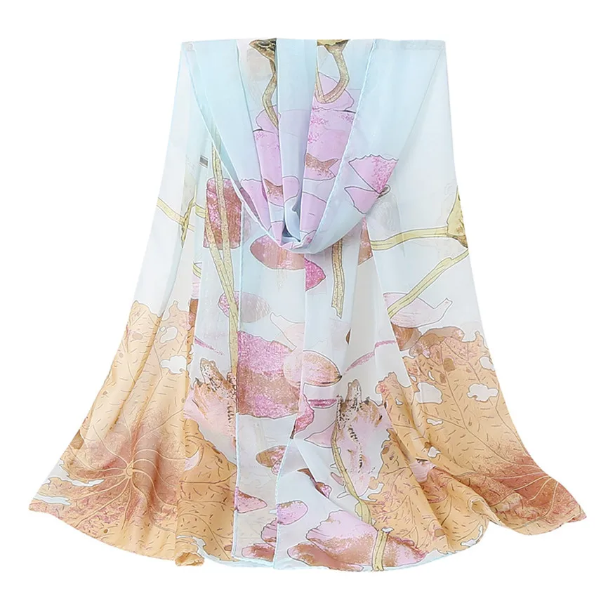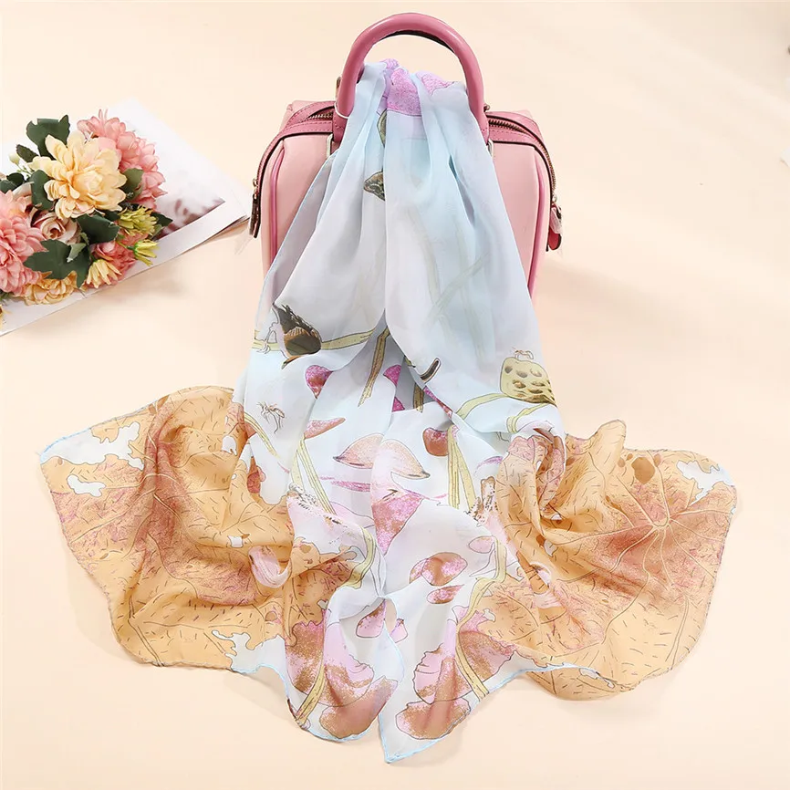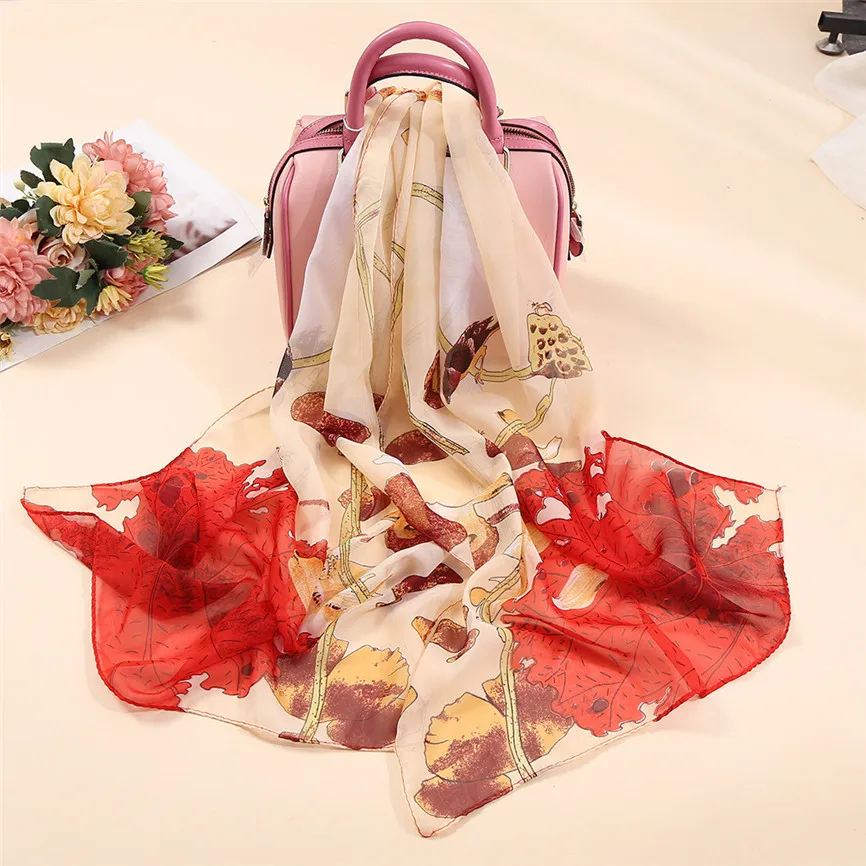 Зимний шарф женский длинный вуаль Цветочный Принт шарф Мягкие пашмины шали и обертывания богемные элегантные шелковые шарфы платки Femme