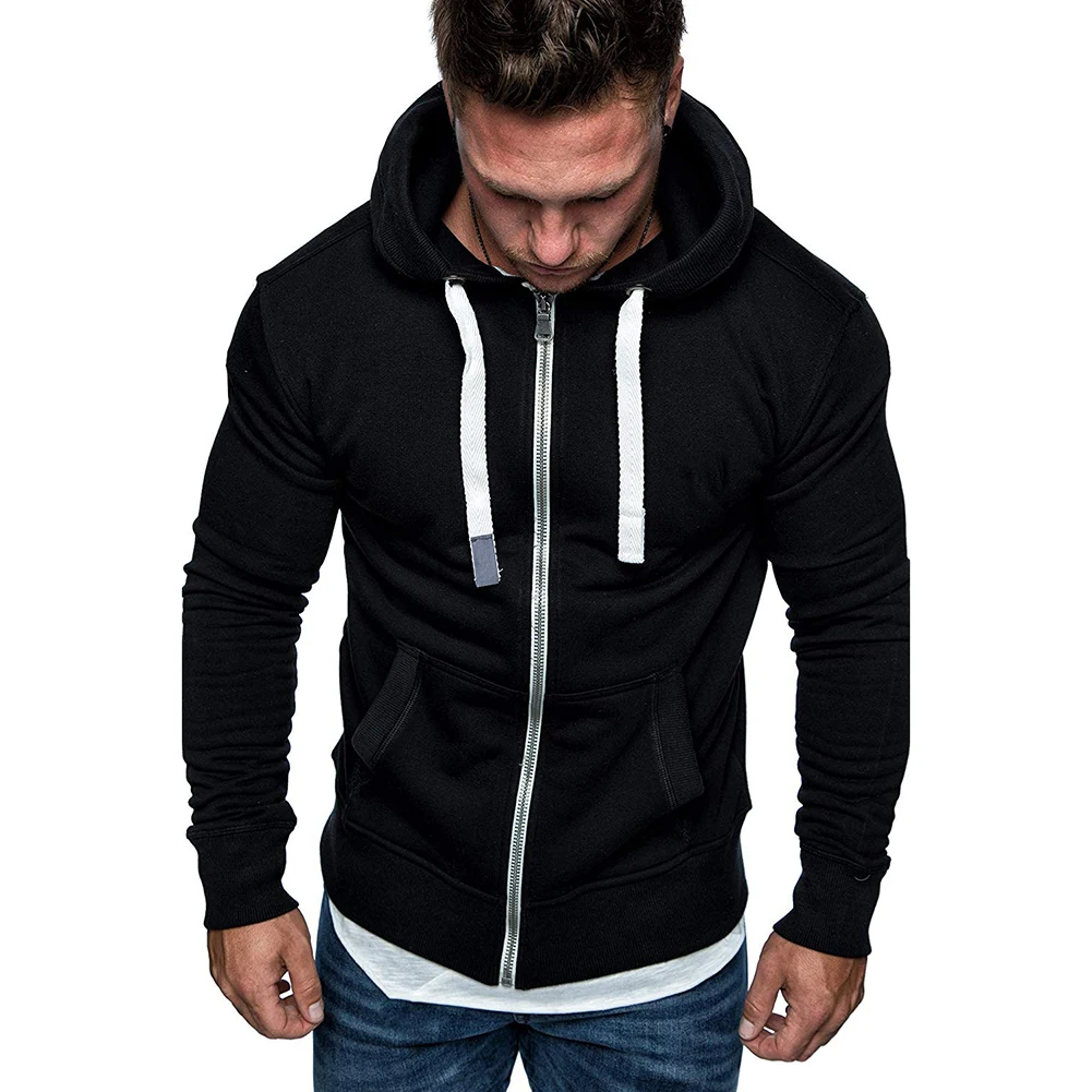 Модная мужская толстовка на молнии с карманом и шнурком, Спортивная Толстовка, пальто, куртка