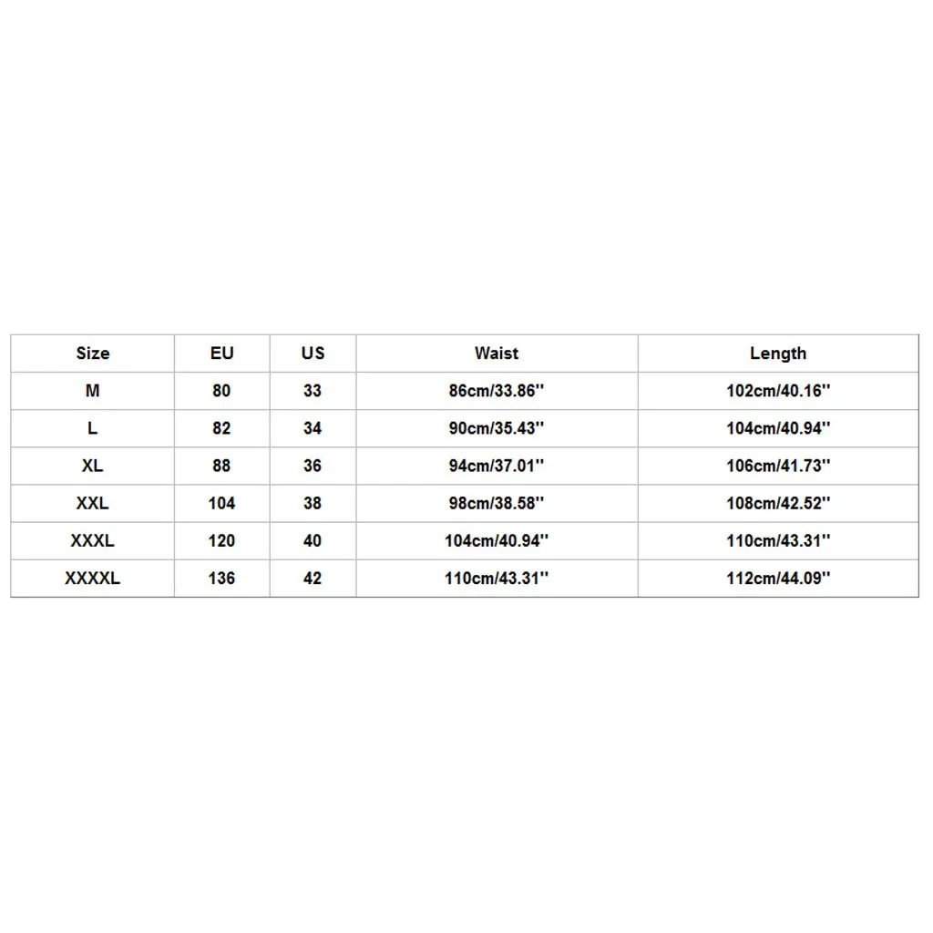 РазмерЕССШАТалияДлинаМ803386 см/33,86''102 см/40,16''L823490 см/35,43''104 см/40,94''XL883694 см/37,01''106 см/41,73''XXL1043898 см/38,58''108 см/42,52''XXXL12040104 см/40,94''110 см/43,31''XXXXL13642110 см/43,31''112 см/44,09''