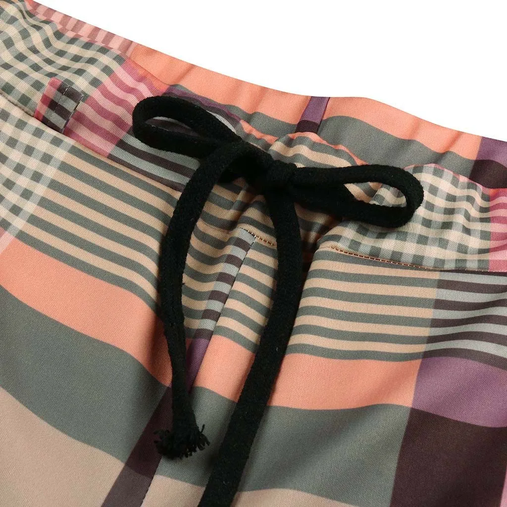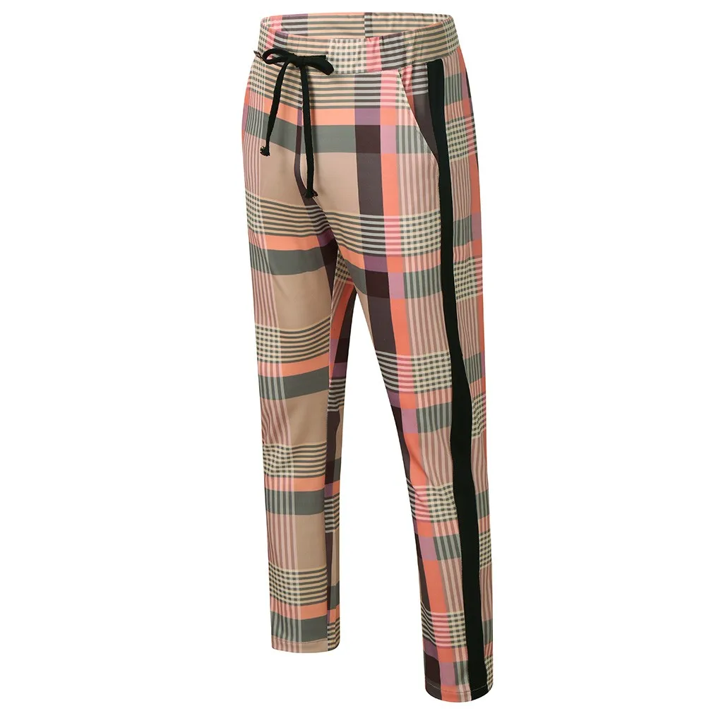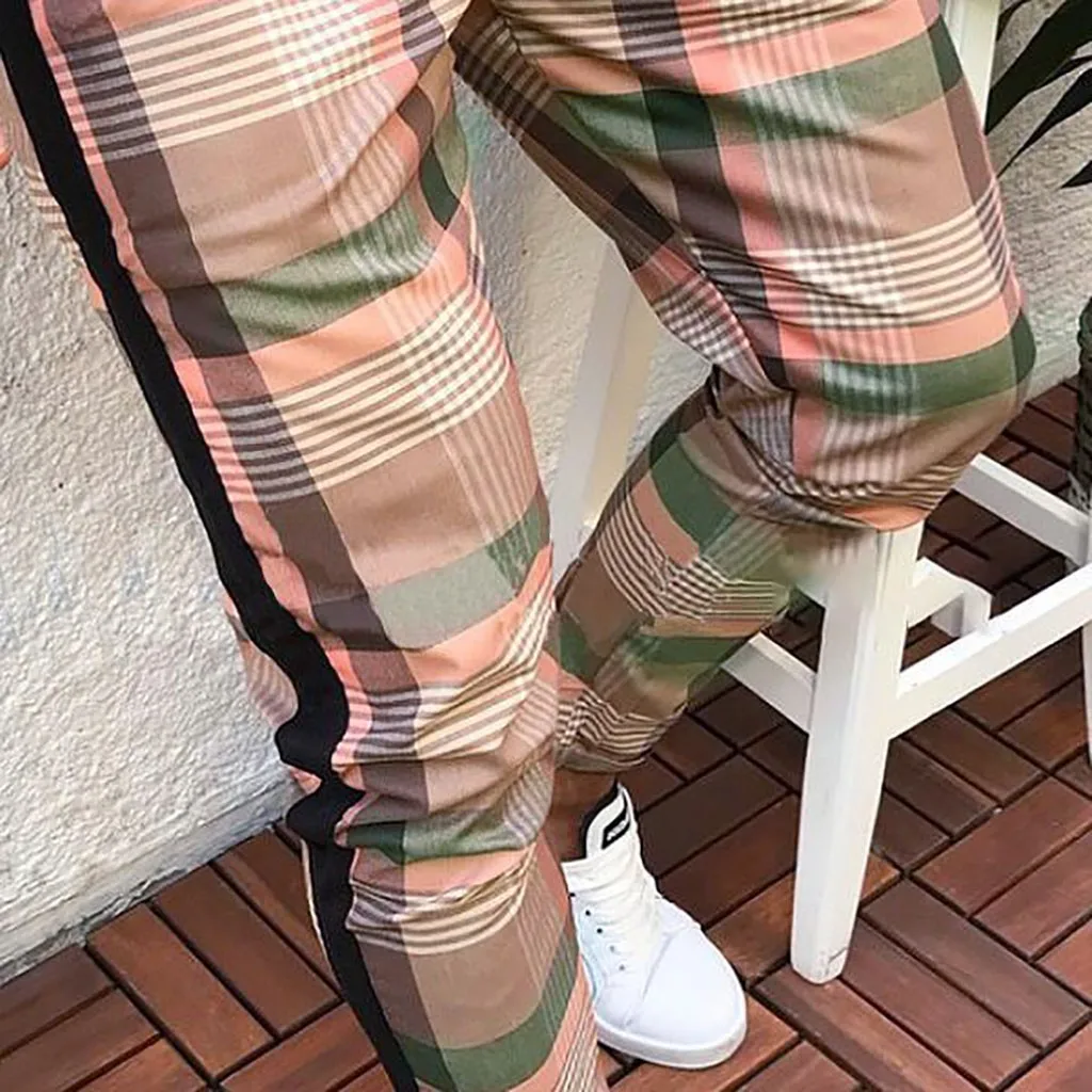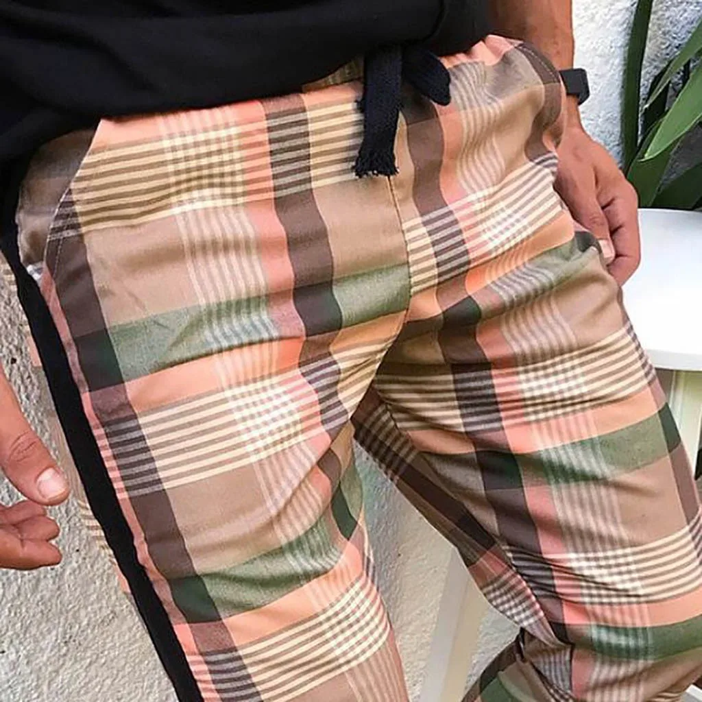 Клетчатые брюки мужские коричневые клетчатые Узкие повседневные клетчатые брюки с эластичной резинкой на талииRs
