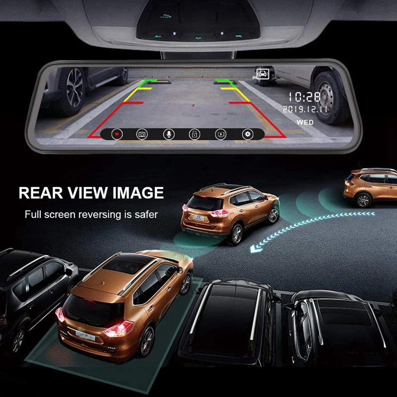 [10-дюймовый потоковый медиа рекордер заднего вида] Full HD IPS пресс-экран потоковое медиа зеркало заднего вида, 2K + 1080P камера, когда автомобиль и объекты позади вас четко показывают вождение, 3 раза HD, 5 раз поле зрения, не беспокойтесь о чтении номерного знака задней шестерни.