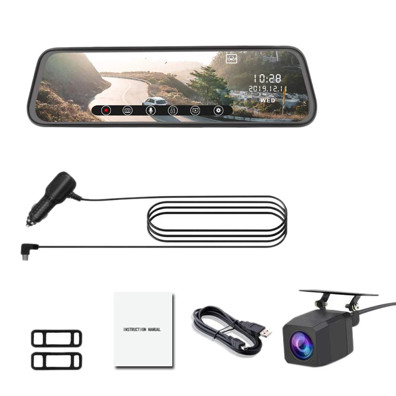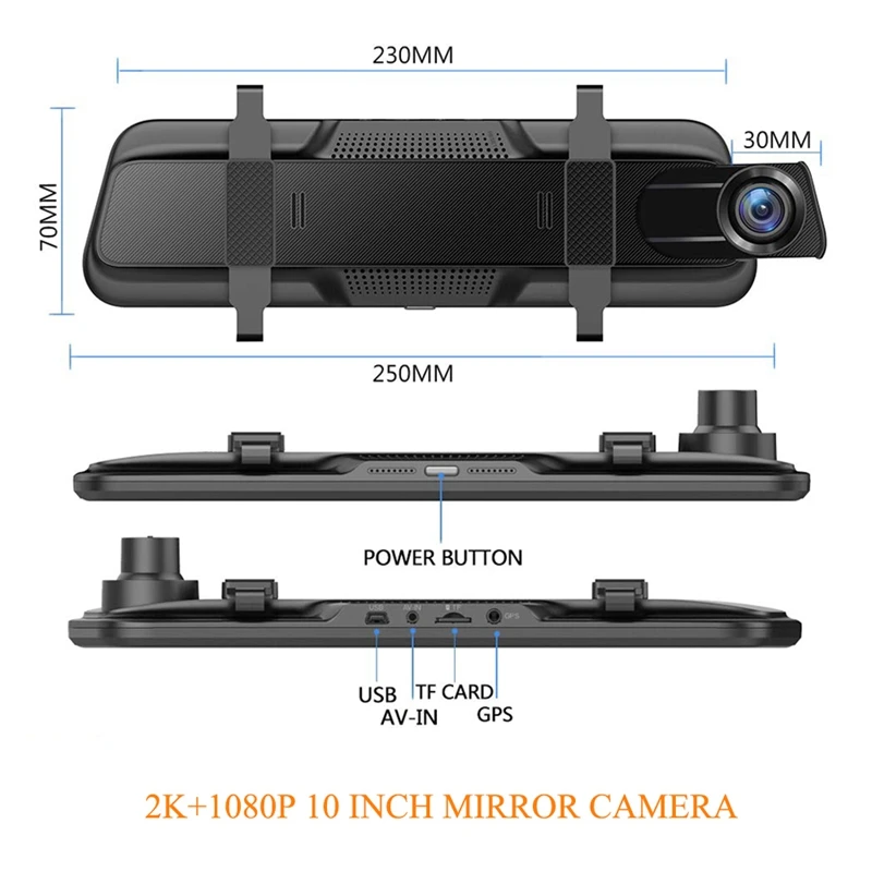 IPS 10-дюймовый видеорегистратор, зеркало заднего вида, видеорегистратор с FHD 2K + 1080P, двойной объектив, пресс-экран, зеркальный видеорегистратор с чипом HAISI 3556
