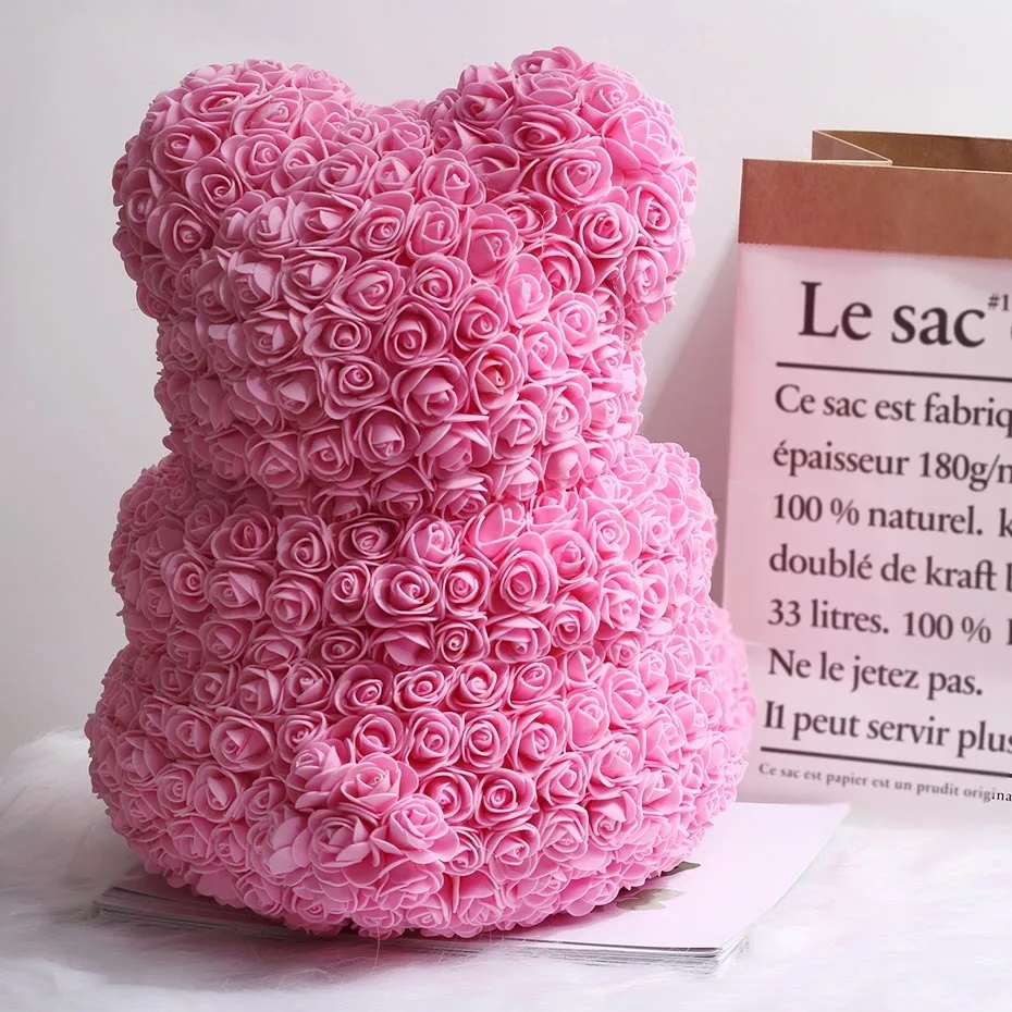 DIY 25 см Мишка Тедди Пояс искусственные из ПЭ коробка розовый цветок медведь День Святого Валентина отправить подруге женщина жена мать подарок на день