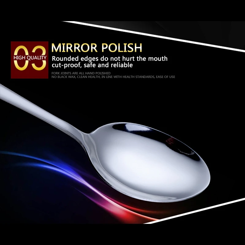 [Изысканное Ремесло]Высококачественная зеркальная полировка гарантирует, что наш набор столовых приборов имеет гладкую, блестящую поверхность, безопасную и удобную в чистке посудомоечную машину.