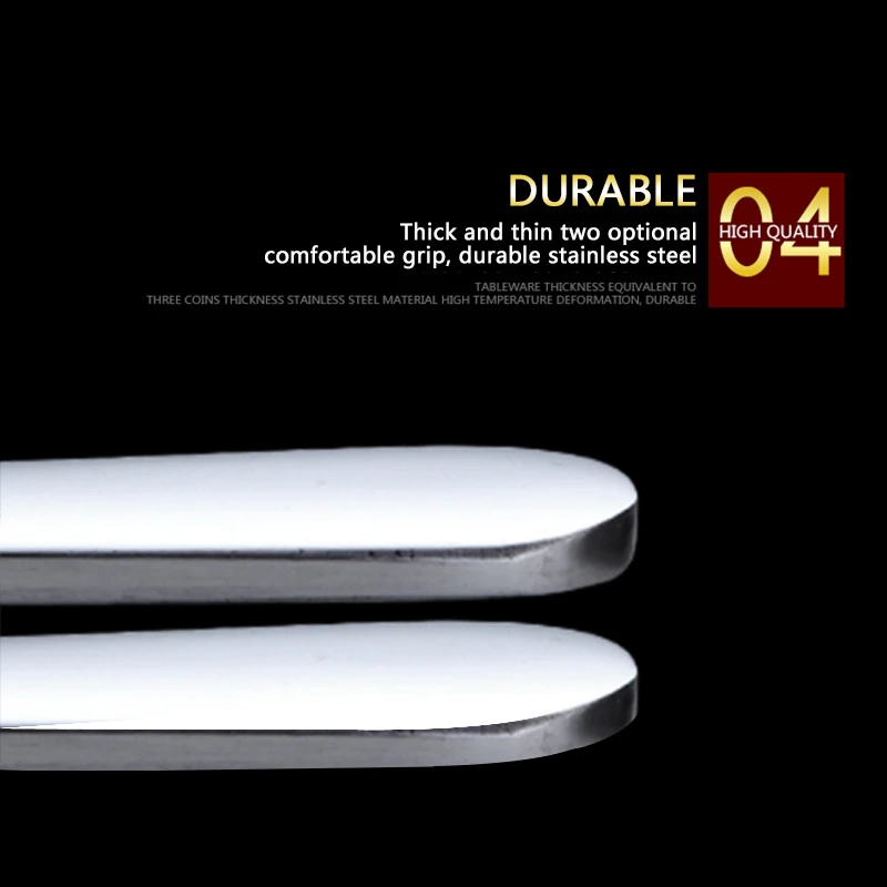 [Эргономичный дизайн]Его идеальный размер и подходящий вес делают эти наборы столовых приборов превосходными на руках, толстая или тонкая ручка двух стилей и гладкий край дают вам самый удобный опыт в столовой.