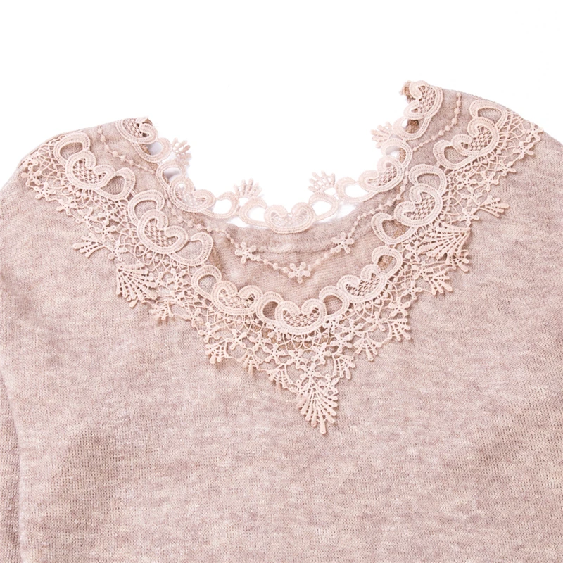 Осенняя Женская одежда, сексуальный элегантный кружевной пуловер с открытой спиной, женский свитер с длинным рукавом, джемпер, вязаный свитер, облегающий