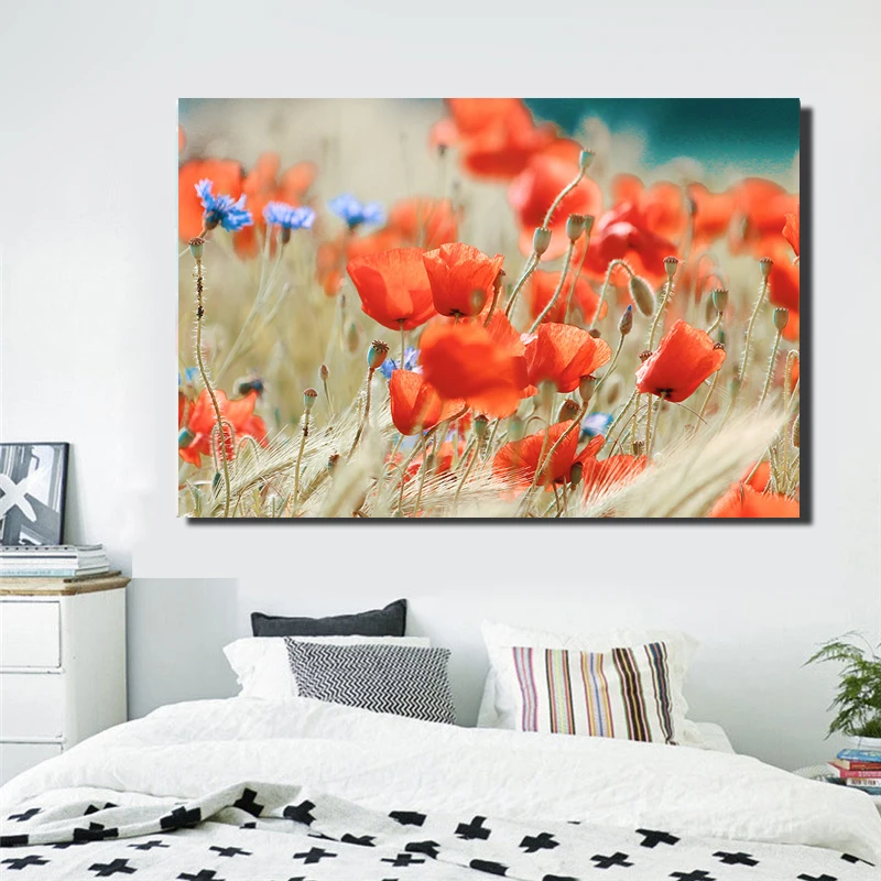 Дикий красный цветок Маки пейзаж картина маслом на холсте современное настенное искусство картина для гостиной