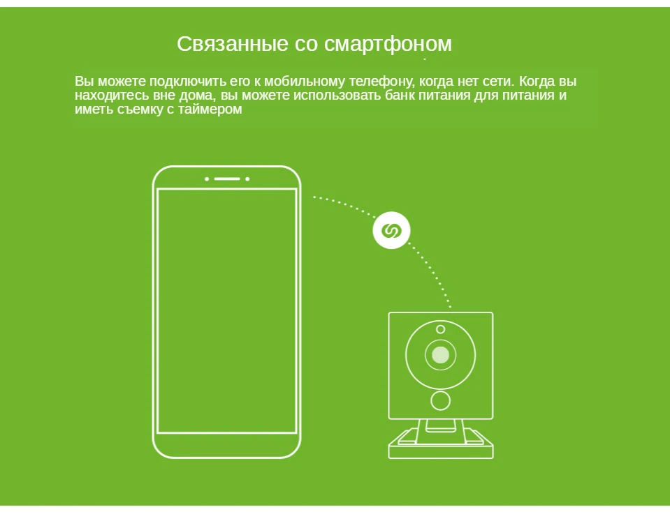 ● Вы можете подключить его к своему мобильный телефон, когда нет чистой работы. ● Когда вы находитесь вне дома, вы можете использовать блок питания для питания и иметь время съемки