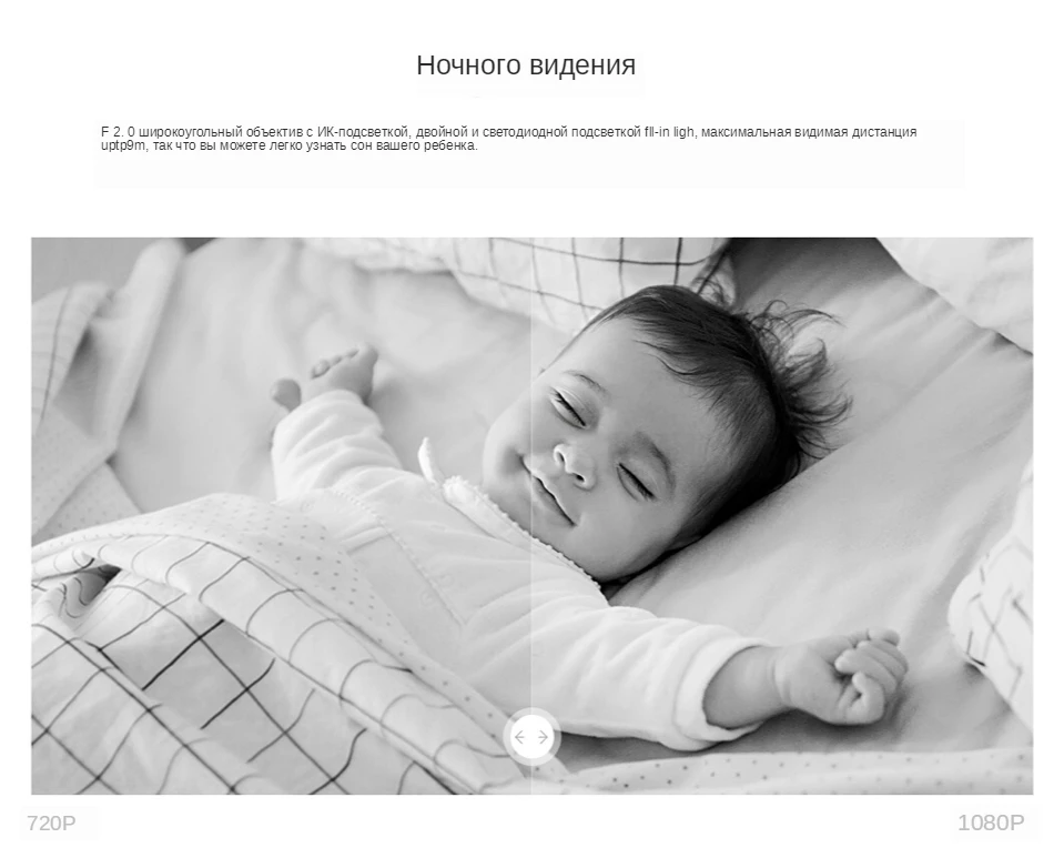 ● Объектив с большой апертурой F2.0 с ИК-подсветкой, двойной и светодиодный, максимальное расстояние обзора до tp 9m, так что вы можете легко узнать сон вашего ребенка