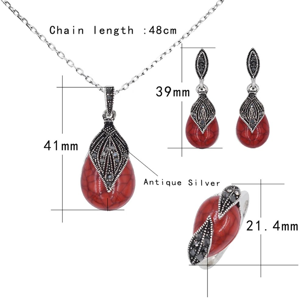 Этот ювелирный набор отличается дизайном листьев и кулоном из искусственной бирюзы с каплями воды, совершенно уникальным.