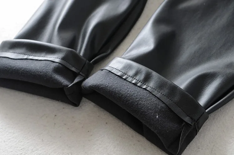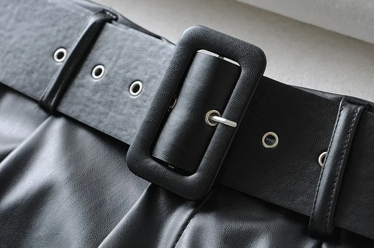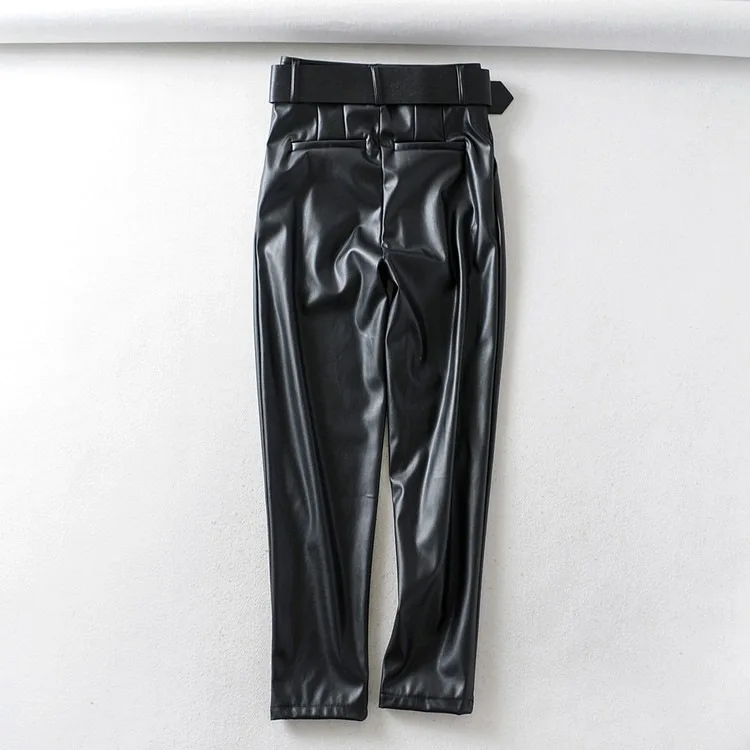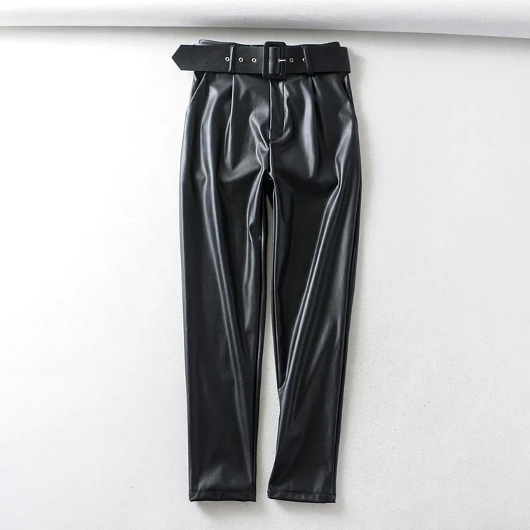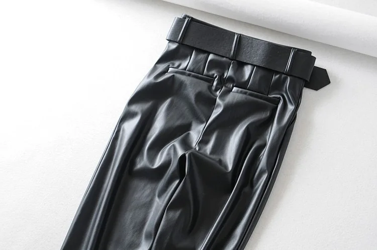 Женские Брюки-Капри из искусственной кожи, зимние прямые брюки из искусственной кожи с высокой талией и поясом, zora