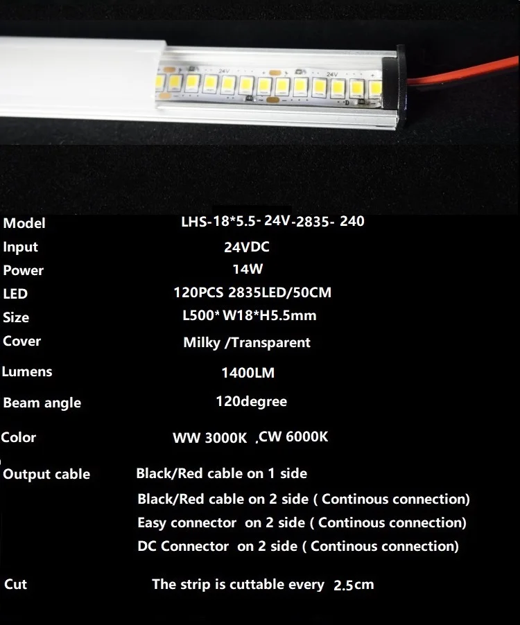 Кабель с 1 стороны, вы можете подключить провод только с этой стороны Кабель с 2 сторон, вы можете подключить бар светильник в серии кабель